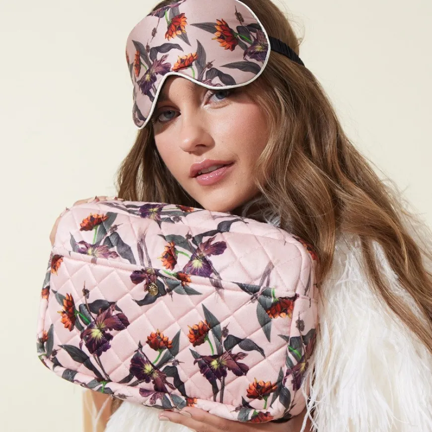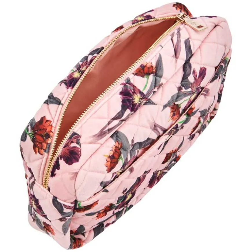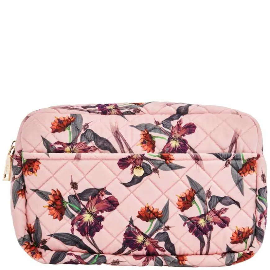 Beauty Bag Rose Hibiscus Large er en stor, myk skjønnhetsveske tilgjengelig i en rekke nydelige materialer og farger for hver sesong. Noen vesker er ideelle for reise, mens andre passer perfekt til hjemmebruk. De har god plass til shampoo, børster, kosmetikk og kremer. Vesken har en Fan Palm-merket gullglidelås og en preget palm logo-knapp. Denne skjønnhetsvesken er perfekt for alle slags eventyr.