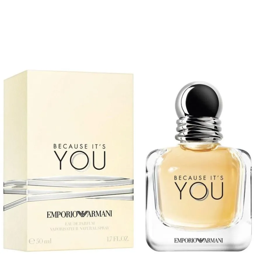 Emporio Armani Because It’s You Eau de Parfum 50 ml. Hennes er lykkelig, deilig og skimrende, rett og slett uimotståelig, som et modent bringebær i sin perfekte og mest elegante natur når det kombineres med neroli. Hvilke hemmeligheter skjuler denne dristige kvinnen? Hennes er kompromissløst feminin, instinktiv og lidenskapelig. Sjarmen hennes fyller umiddelbart luften, som en avhengighetsskapende og sofistikert rose.