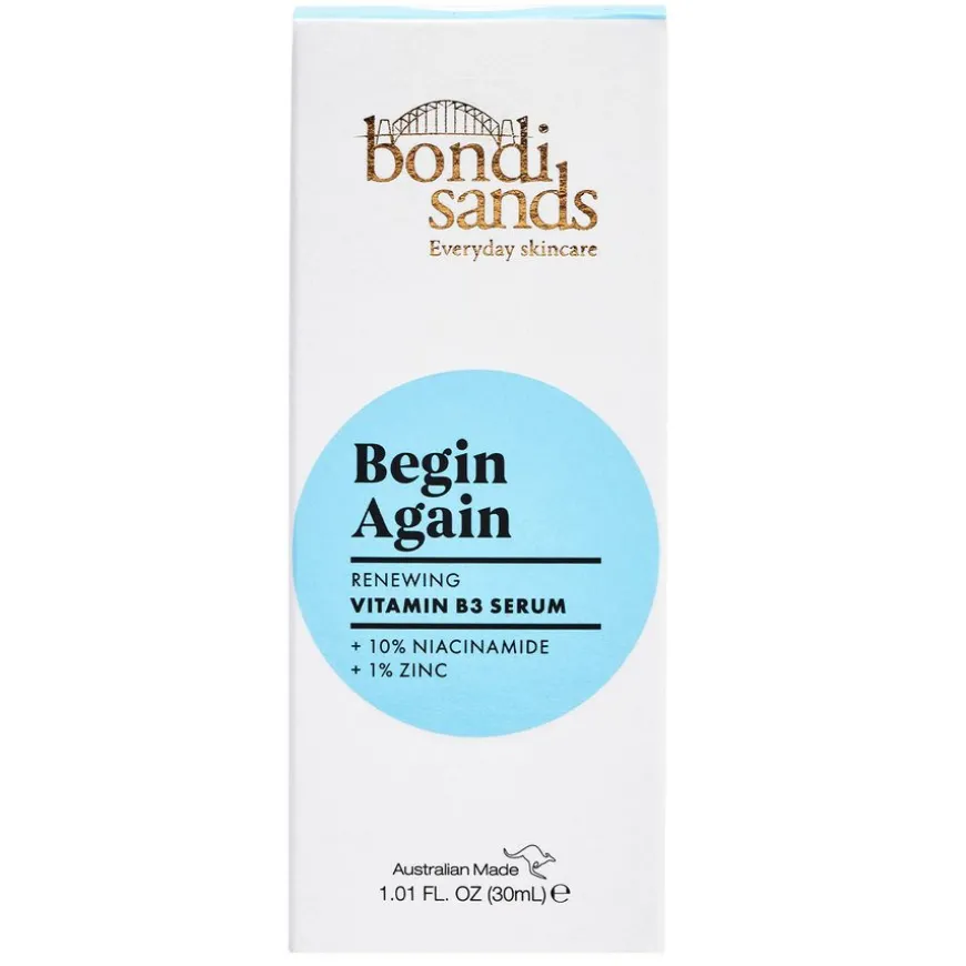 - Påfør 2–3 dråper Bondi Sands Begin Again Vitamin B3 Serum på ren og tørr hud.