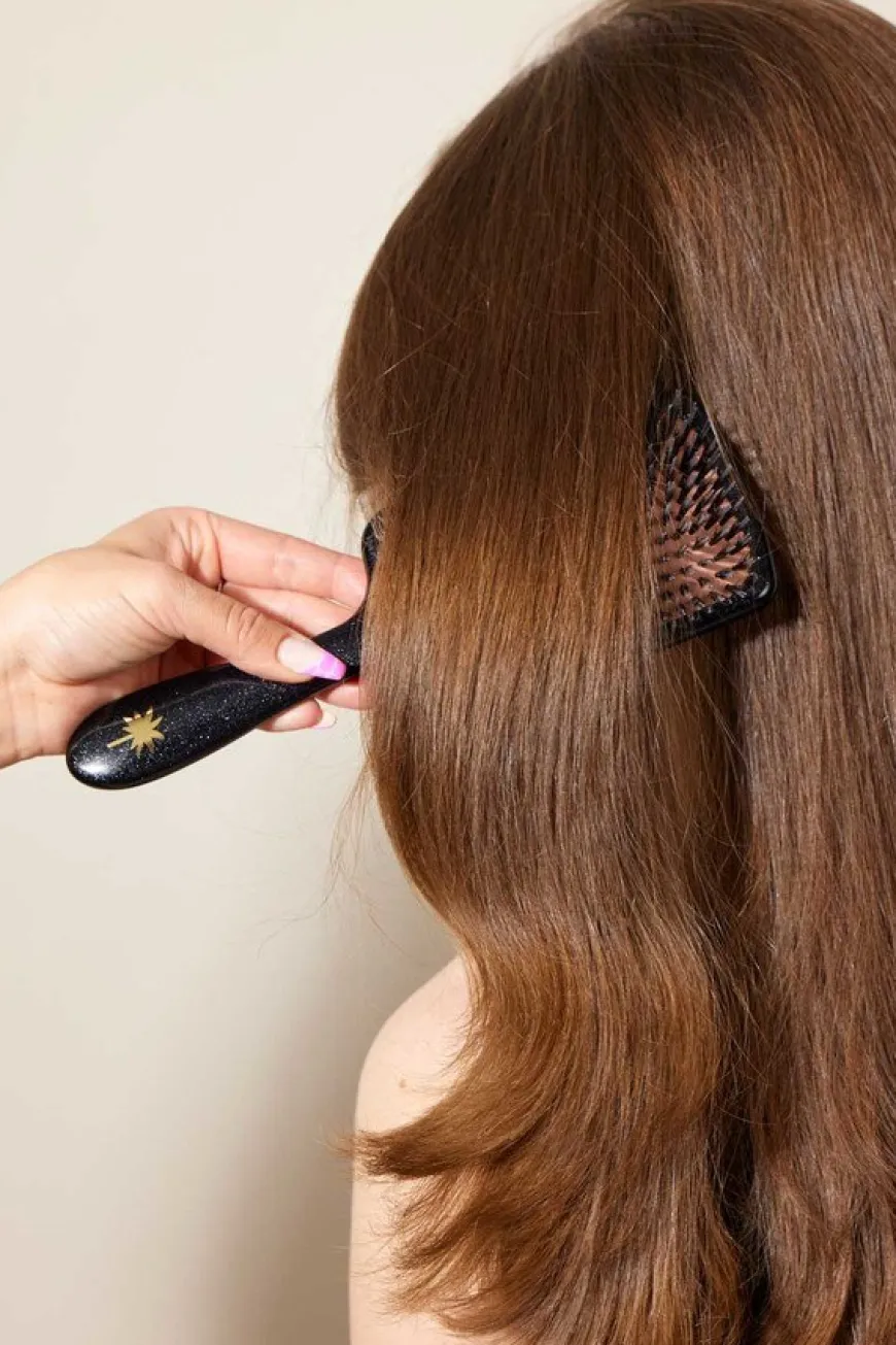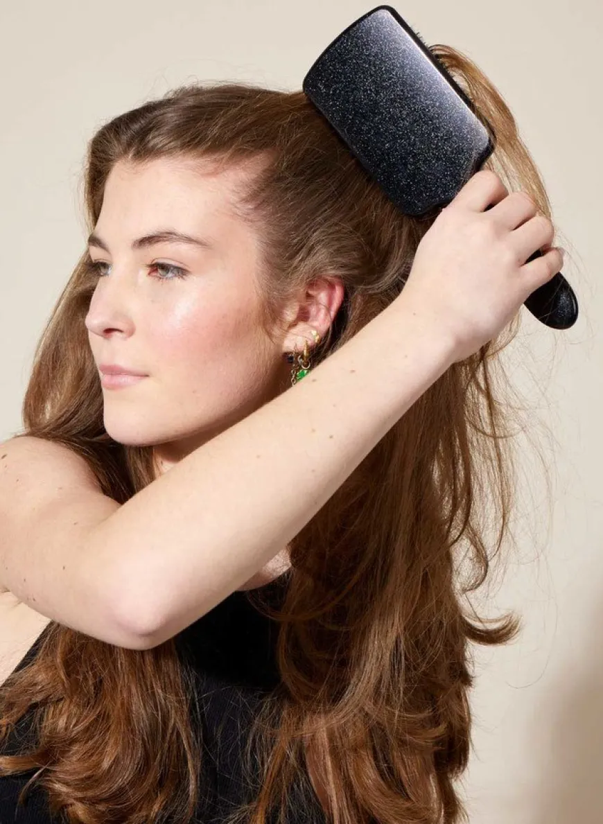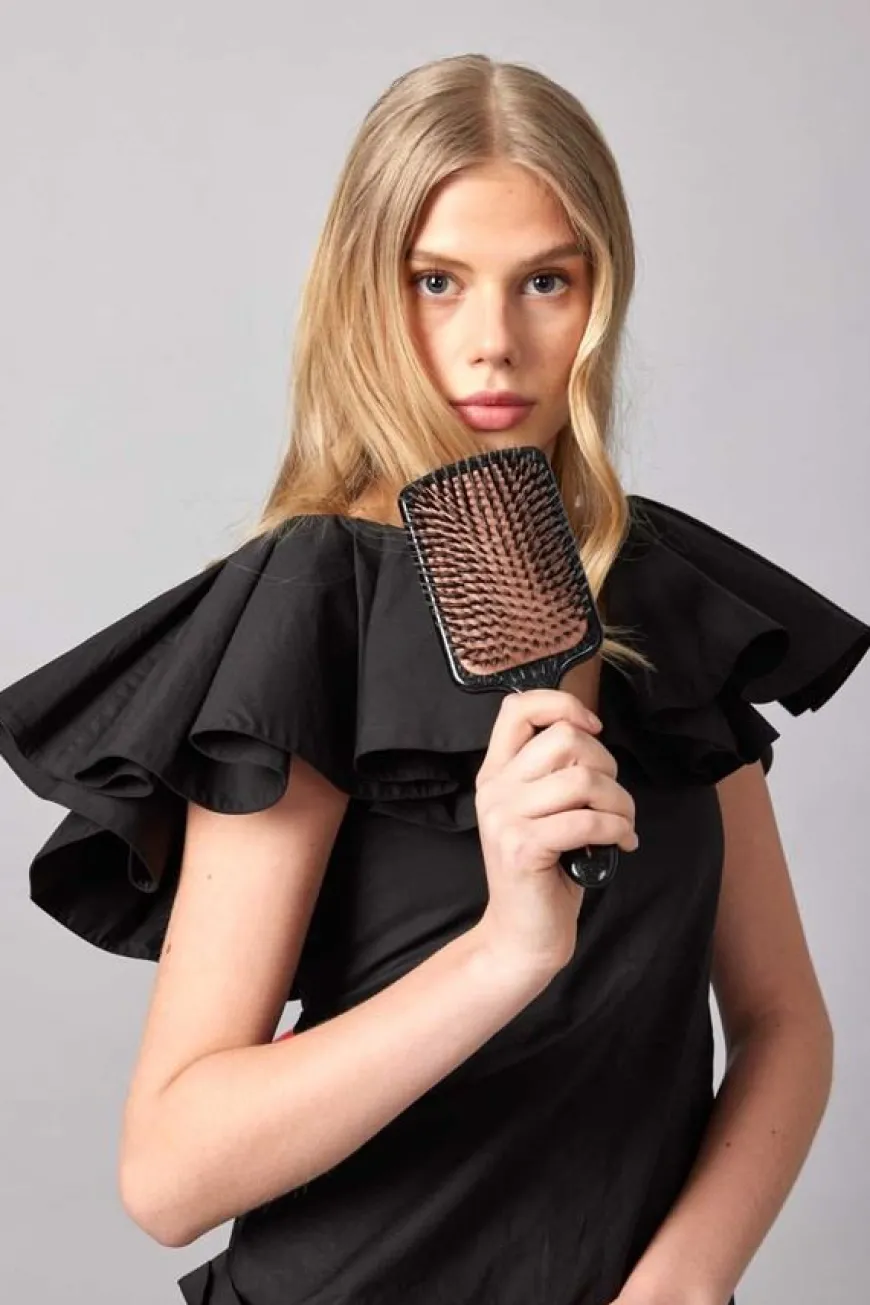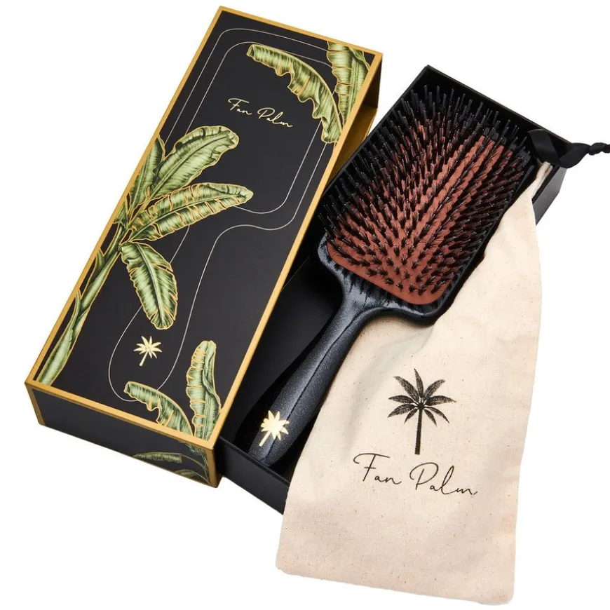 Big Star Large Paddel Brush er en stor paddel børste med svinebust og nylonbust som tilfører glans og glatthet til håret. Nylonbustene er lengre for å forsiktig stimulere hodebunnen og gre håret, mens svinebustene hjelper med å fordele talg. Den stimulerer blodsirkulasjonen i hårsekkene, og mange opplever at de kan redusere hyppigheten av hårvask til hver tredje eller fjerde dag. Leveres i en nydelig eske med detaljer i gullfolie.