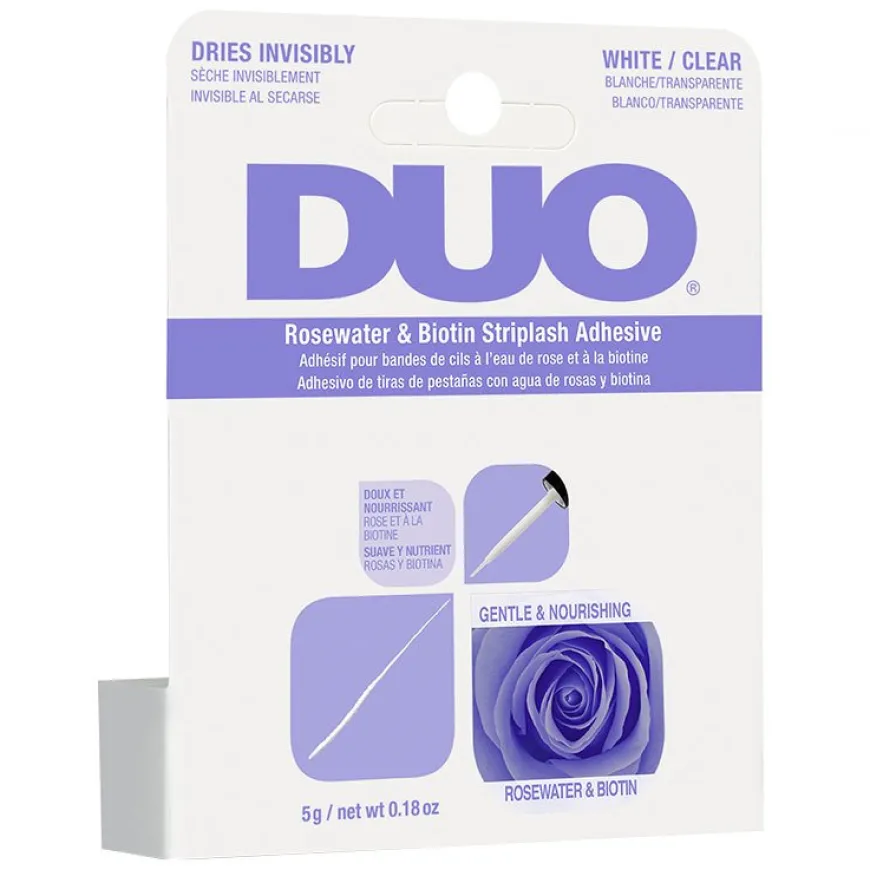 Hvem sa at det bare var hudpleieprodukter som kunne gi deg velvære? Nå kommer Duo Biotin Rose Striplash Adhesive, et vippelim med nærende rosevann og biotin til vippekanten din.