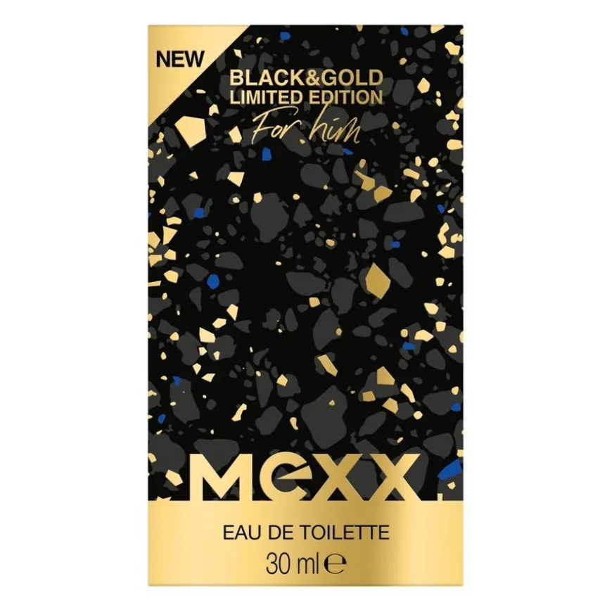 Mexx Black & Gold, en solid, firkantet flaske prydet med gullflak, skiller seg virkelig ut, fylt med en midnattblå væske for å feire livets øyeblikk. Gjør enhver anledning gnistrende og varig med den nye Limited Edition Eau de Toilette For Menn Black & Gold.