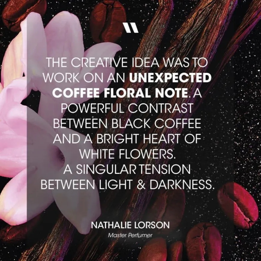 Flasken er en upolert svart diamant – rå, sensuell og intens. Den glitrende svarte overflaten avslører en strålende ring av femininitet, og ligger perfekt i håndflaten, som en naturlig forlengelse av deg selv.