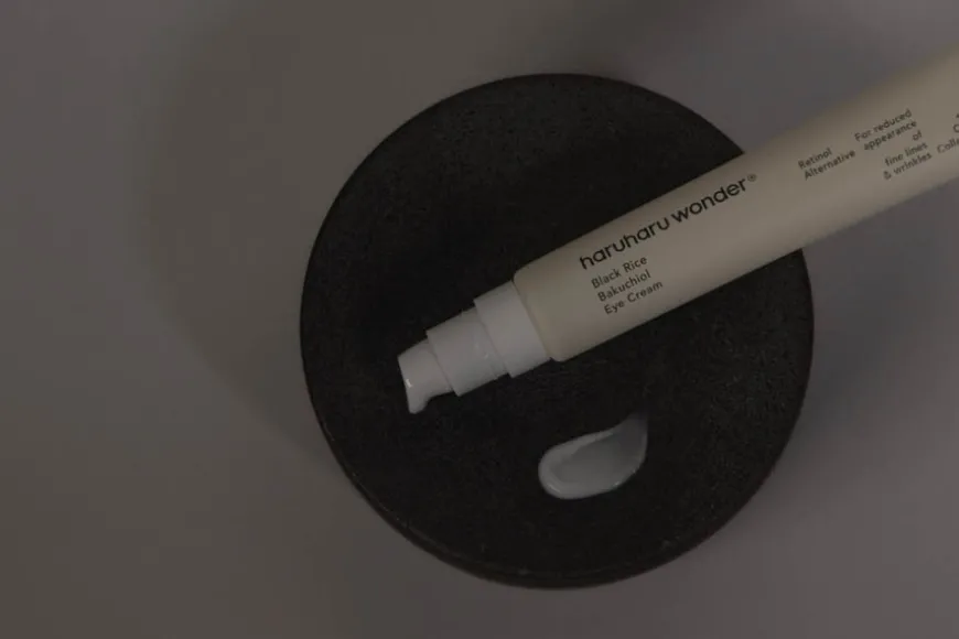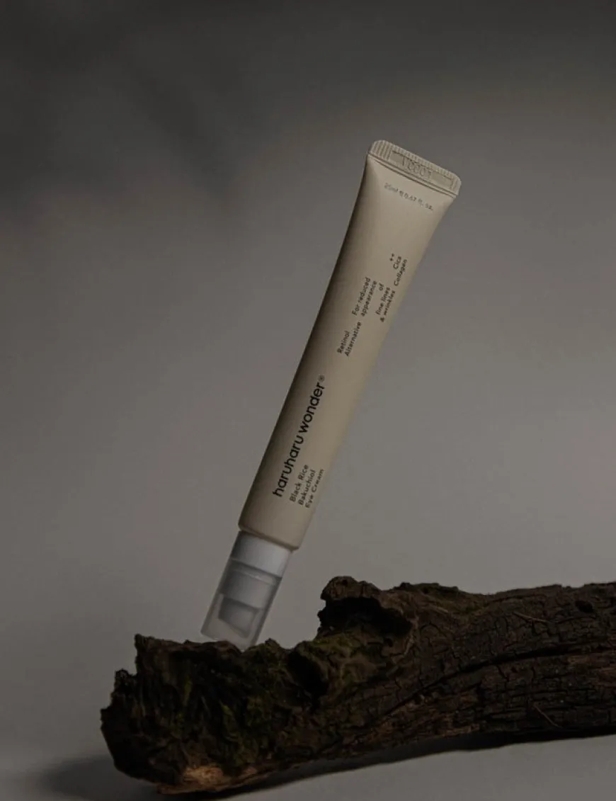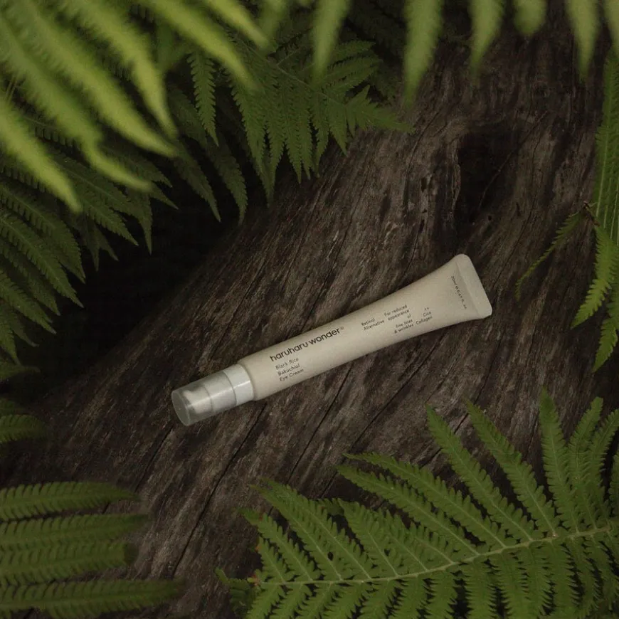 haruharu wonders Black Rice Eye Cream er en vegansk øyekrem med fermentert svart ris, bambusskuddbarkekstrakt og planteavledet Bakuchiol (retinolerstatning).