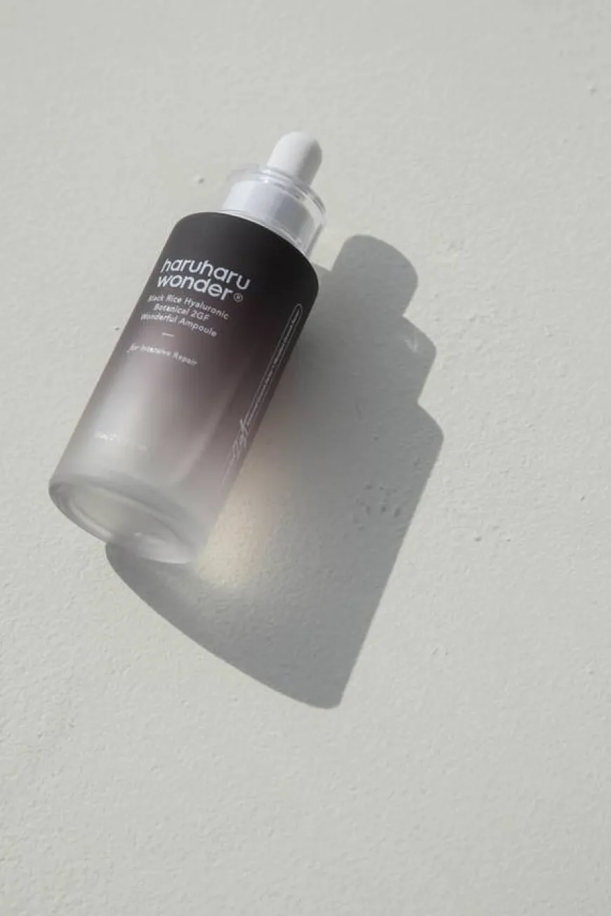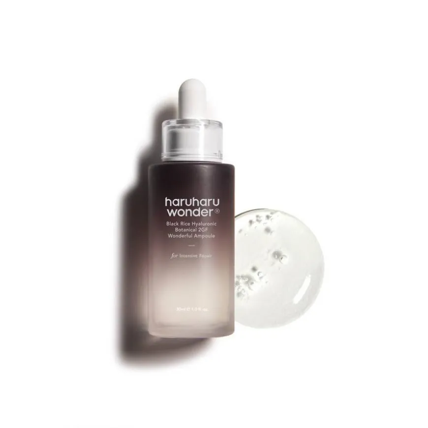 Black Rice Hyaluronic Botanical 2GF wonderful Ampoule er en ampulle formulert med EGF og FGF for å stimulere kollagenproduksjonen og hydrere huden. Ampullen gir antioksidantfordeler fra fermentert svart risekstrakt og fermentert phyllostachys pubescens (moso bambus) skuddbarkekstrakt. Den er også beriket med sort svalurtekstrakt og madecassoside for å berolige sensitiv hud.