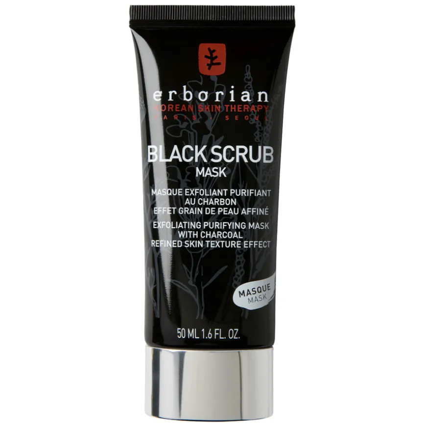 Black Scrub Mask er en 2-i-1 eksfolierende maske. Masken er formulert med kullpulver, kjent for sine rensende egenskaper og bomullsmikrofibre. Denne friske gelen hjelper med å fjerne urenheter fra huden, eliminere døde hudceller og absorbere overskudd av talg. Umiddelbart bidrar den til å forbedre hudens tekstur og redusere glans, slik at huden føles mykere og ser synlig mer strålende og klarere ut.
