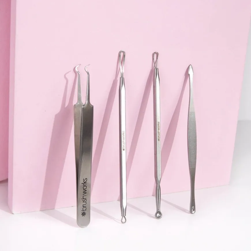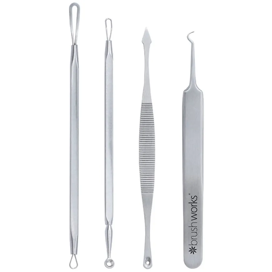 Blackhead & Blemish Remover Set er et komplett sett med fire unike verktøy med syv forskjellige hoder. Settet fjerner hudormer og andre urenheter for en jevn og klar hud uten å etterlate skader på huden. Håndlaget i rustfritt stål og av høy kvalitet – perfekt designet for ytelse og presisjon. Disse verktøyene er holdbare, hygieniske og enkle å rengjøre.