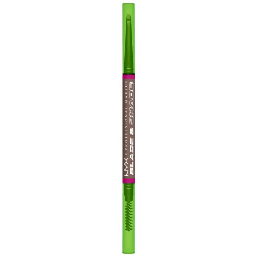 NYX Professional Makeup Blade & Shade er NYX sin første øyenbrynsblyant med både en skarp og en flat tupp slik at du kan tegne opp brynene nøyaktig og fylle inn og skyggelegge brynene med samme produkt. Tegn små nano-tynne streker, full in den flate siden og snu blyanten og børst for å skape en look som ser ut som microblading. Sitter som den skal i opptil 16 timer og smitter ikke av.