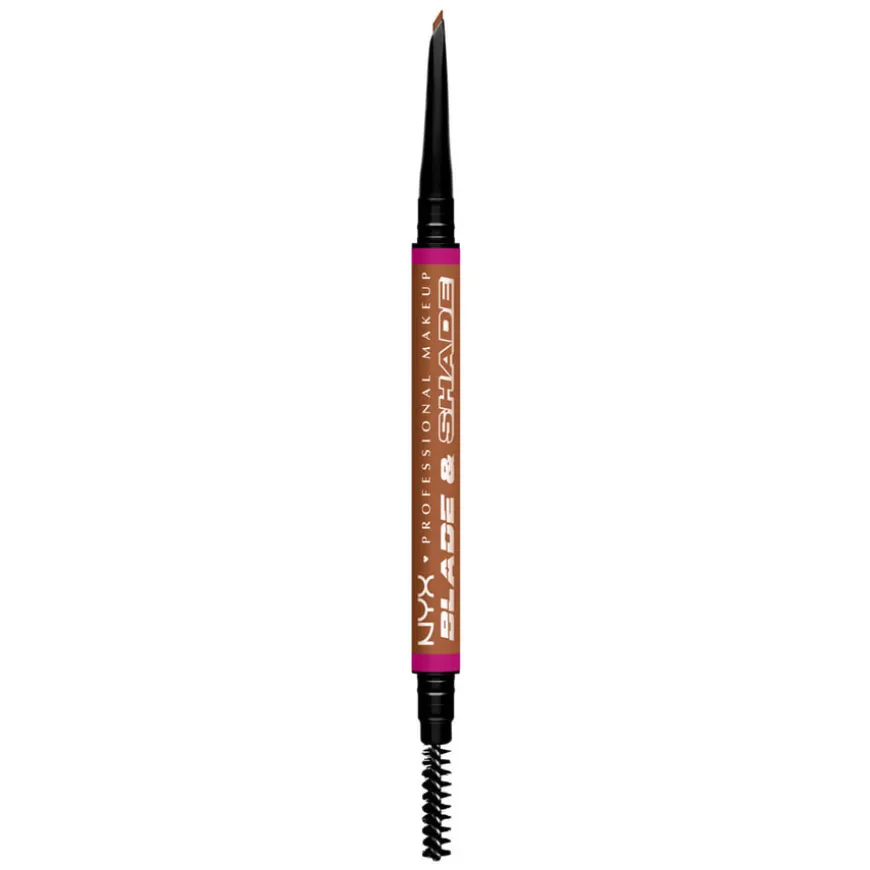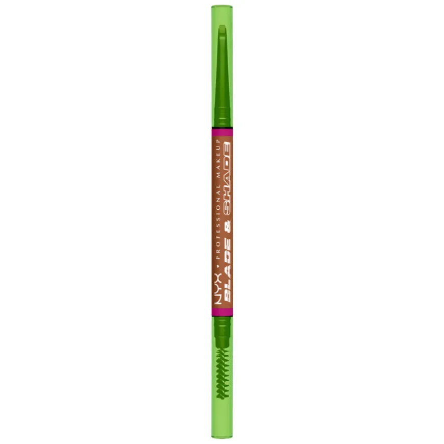 NYX Professional Makeup Blade & Shade er NYX sin første øyenbrynsblyant med både en skarp og en flat tupp slik at du kan tegne opp brynene nøyaktig og fylle inn og skyggelegge brynene med samme produkt. Tegn små nano-tynne streker, full in den flate siden og snu blyanten og børst for å skape en look som ser ut som microblading. Sitter som den skal i opptil 16 timer og smitter ikke av.