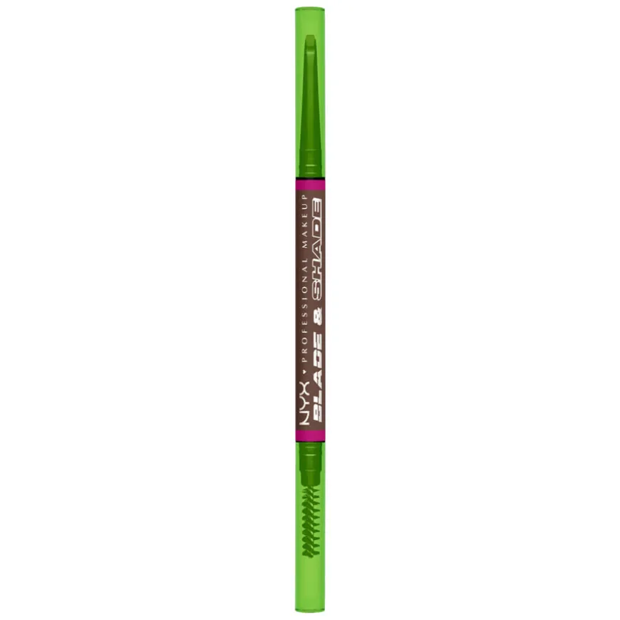 NYX Professional Makeup Blade & Shade er NYX sin første øyenbrynsblyant med både en skarp og en flat tupp slik at du kan tegne opp brynene nøyaktig og fylle inn og skyggelegge brynene med samme produkt. Tegn små nano-tynne streker, full in den flate siden og snu blyanten og børst for å skape en look som ser ut som microblading. Sitter som den skal i opptil 16 timer og smitter ikke av.