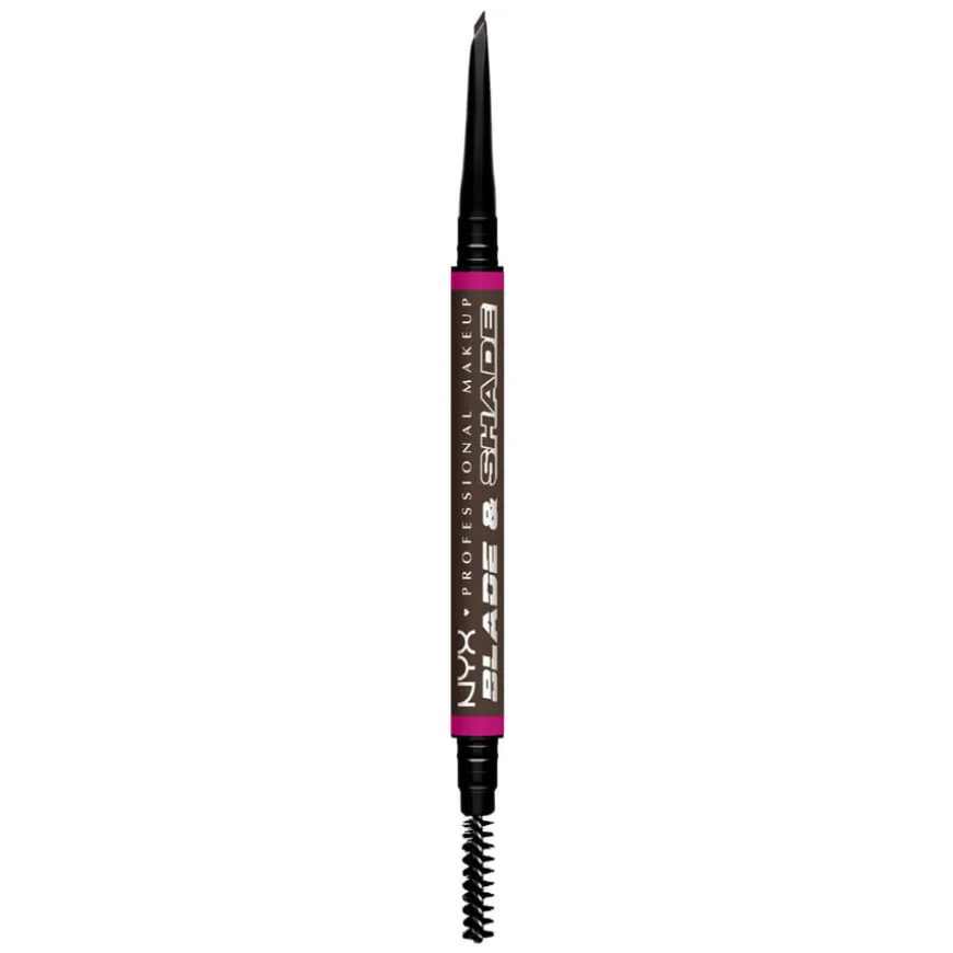 NYX Professional Makeup Blade & Shade er NYX sin første øyenbrynsblyant med både en skarp og en flat tupp slik at du kan tegne opp brynene nøyaktig og fylle inn og skyggelegge brynene med samme produkt. Tegn små nano-tynne streker, full in den flate siden og snu blyanten og børst for å skape en look som ser ut som microblading. Sitter som den skal i opptil 16 timer og smitter ikke av.