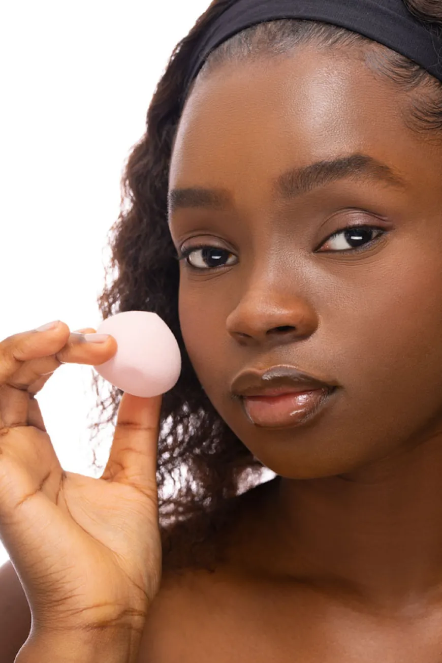 - Bruk midten av svampen til å påføre blush på eplekinnene og blende contour på kinnbena for en sømløs finish.