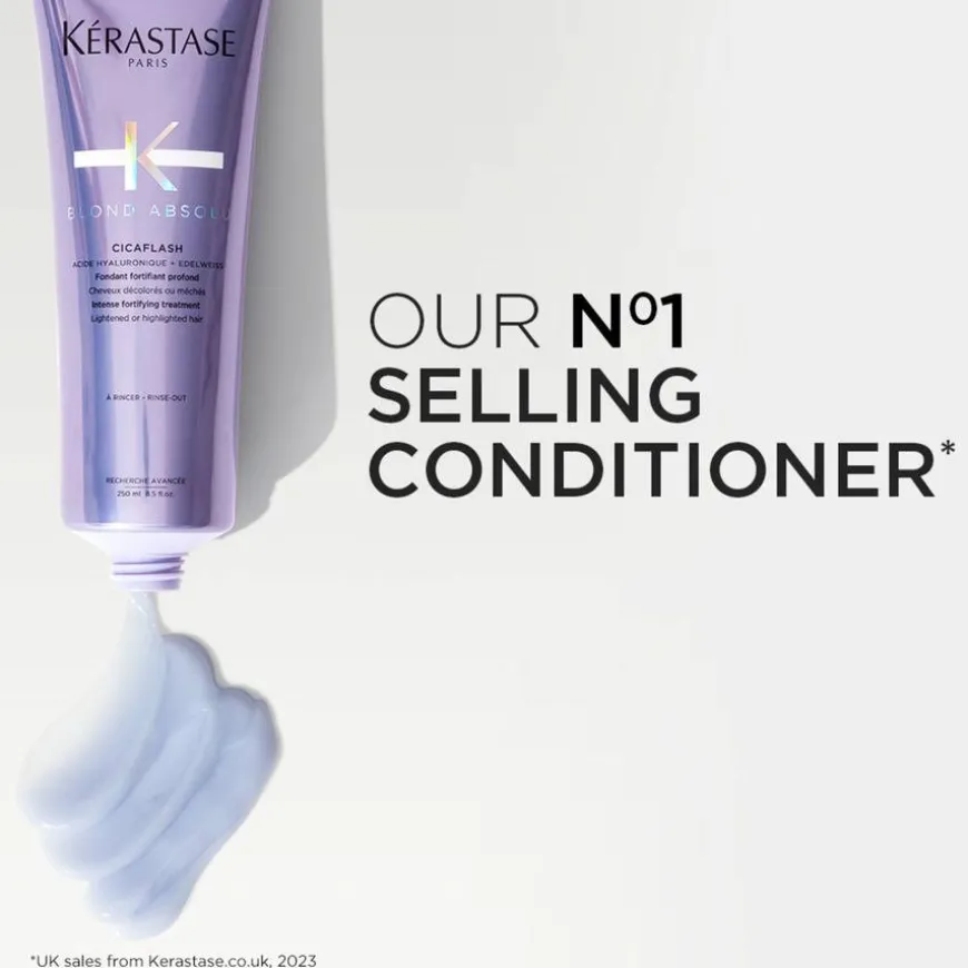 Blond Absolu Cicaflash er en melkeaktige gele med en myk lavendelfarge som reparerer håret som en maske, samtidig som den er like lett som en balsam. Den gjenoppretter skadet hår og tilfører fibrene næring. Kombinasjonen av hyaluronsyre og edelweiss-blomst gjør håret glattere, sterkere og mykere. Cicaflash er velegnet for alle blonde toner, og forebygger at håret knekker eller blir slitt. Håret blir mykt og fuktet, samtidig som det forblir lett og strålende.