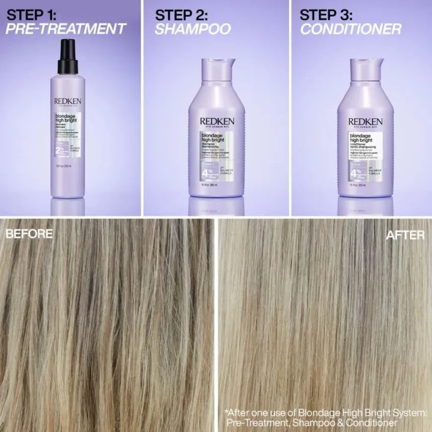 Redken Blondage High Bright Conditioner er en balsam som gir en jevn avslutning på hårpleierutinen og etterlater håret mykt og silkeaktig. Som en del av High Bright-rutinen, hjelper denne balsamen med å lysne opp blondt hår* med en ikke-uttørkende formel. Blondage High Bright er formulert med C-vitamin + Brightening Care Complex. Perfekt til alle typer farget, stripet eller naturlig blondt hår og holder blondfargen din lys og klar mellom frisørtimer. *Ekspertvurdering på 53 modeller etter bruk av etter bruk av seriens sjampo, balsam og behandling.