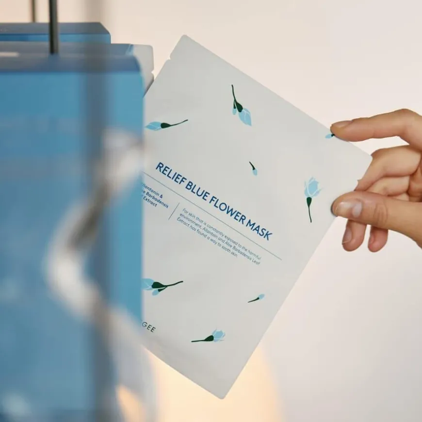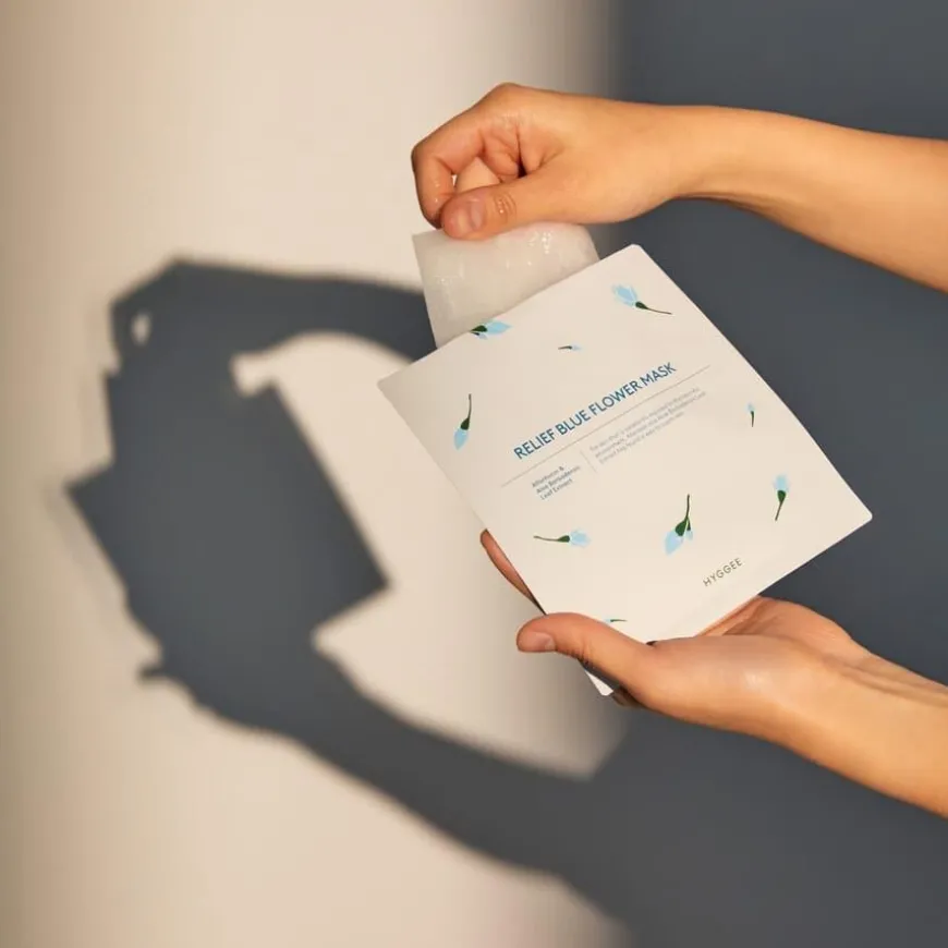 Blue Flower Relief Flower Mask er en fuktgivende maske.Denne masken virker beroligende og kjølende på huden, ettersom den inneholder aloe vera, som også beroliger huden etter soleksponering og har en dyp fuktighetsgivende effekt. Ekstrakt fra legestokkrose reduserer rødhet og lindrer betennelse i huden. Masken inneholder også panthenol, som fukter huden og bidrar til å bygge opp hudens egen barriere. Resultatet er en rolig hud som er dypt hydrert.