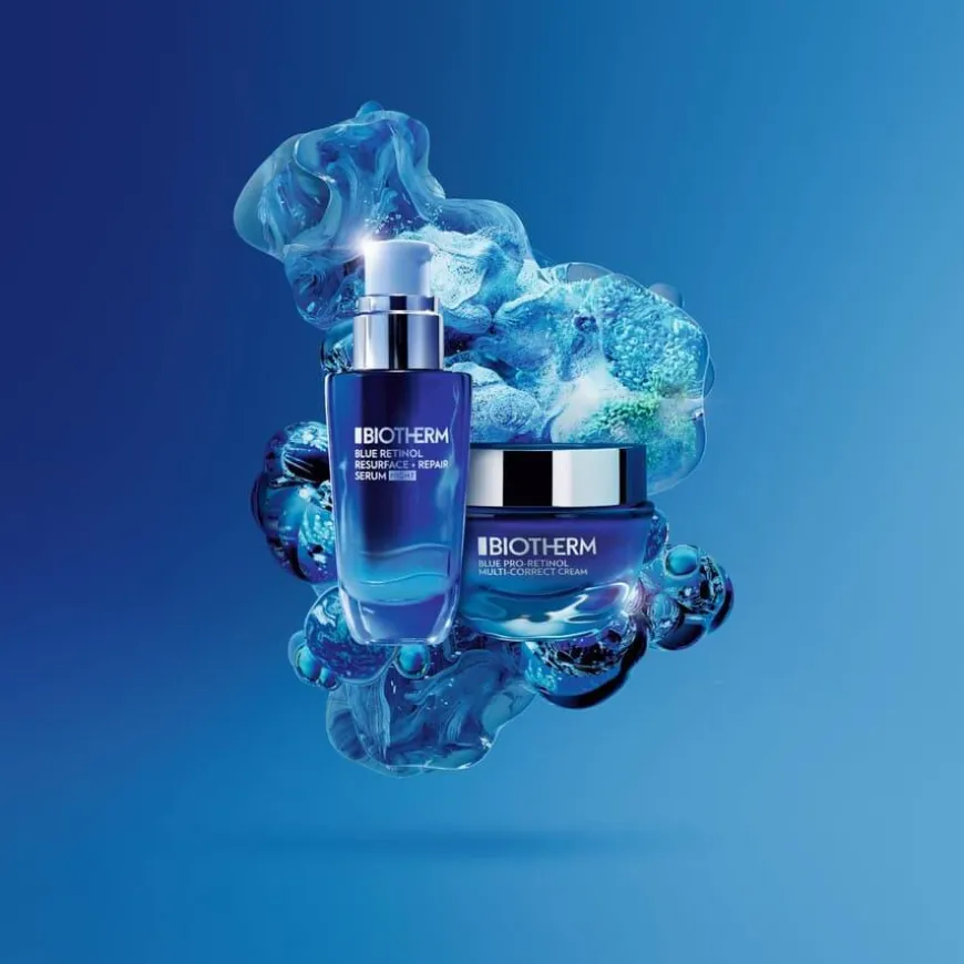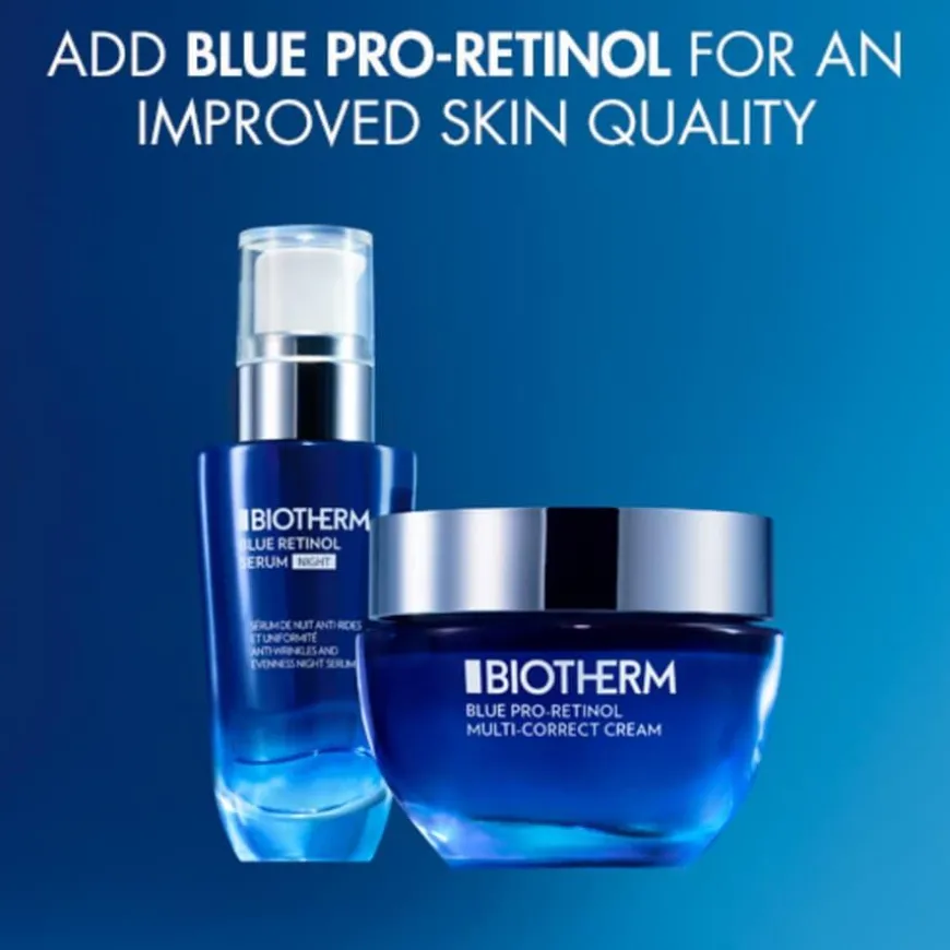 - BLUE RETINOL: 1 % Life Plankton + 0,25 % Retinol. En kombinasjon av den kraftfulle antiageing-ingrediensen retinol og Biotherms signaturingrediens Life Plankton, som bidrar til hudfornyelsen.