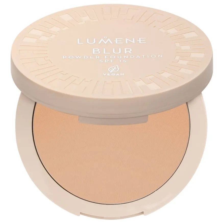 Blur Longwear Powder Foundation SPF 15 er en 2-i-1 pudderfoundation som kombinerer foundationens korrigerende egenskaper med en effekt som gjør at huden umiddelbart ser jevnere og feilfri ut. Vegansk pudder som ikke tørker ut huden og inneholder skinnende nordiske multebær og innkapslet fuktighetsgivende hyaluronsyre.