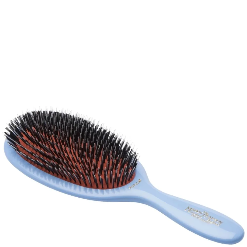 BN1 Popular er den mest ikoniske og største hårbørsten i Mason Pearson-kolleksjonen, designet for deg som ønsker det aller beste for håret ditt. Denne luksuriøse børsten er håndlaget med en kombinasjon av nylon og naturlige villsvinhår som skånsomt løser opp floker, masserer hodebunnen og fordeler hårets naturlige oljer jevnt fra rot til spiss. Den gir effektiv flokeløsning, stimulerer hårvekst og etterlater håret glansfullt, mykt og sunt – uten bruk av stylingprodukter. Egnet for langt, tykt hår eller hår med høy tetthet. Hver børste leveres i en vakker retroinspirert eske og er et ekte stykke håndverk bygget for å vare.