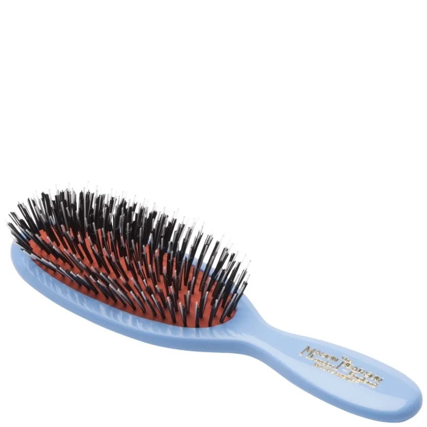 BN4 Pocket Bristle And Nylon er den minste hårbørsten i Mason Pearson-kolleksjonen, men leverer like høy kvalitet som de større modellene. Denne håndlagde børsten kombinerer villsvinhår og nylon for å stimulere hodebunnen og fordele naturlige oljer jevnt fra rot til spiss. Resultatet er glansfullt, sterkt og sunt hår – uansett hvor du er. Perfekt for middels til tykt hår, kort hår eller de som foretrekker en liten reisestørrelse. En kompakt, praktisk og elegant hårbørste som passer i enhver premium hårpleierutine.