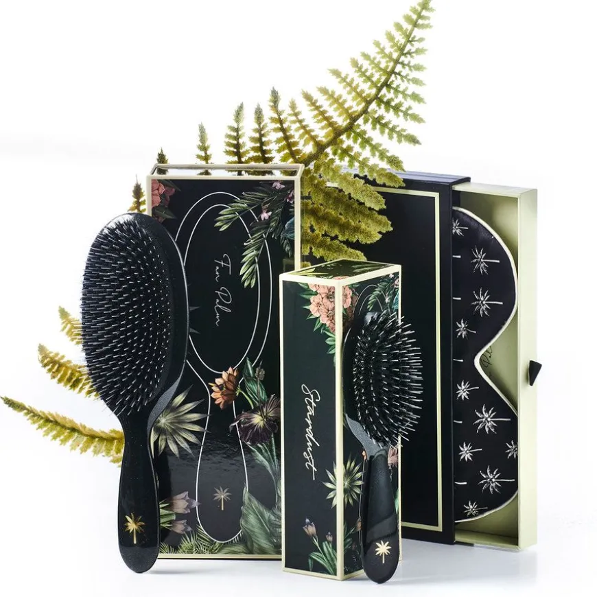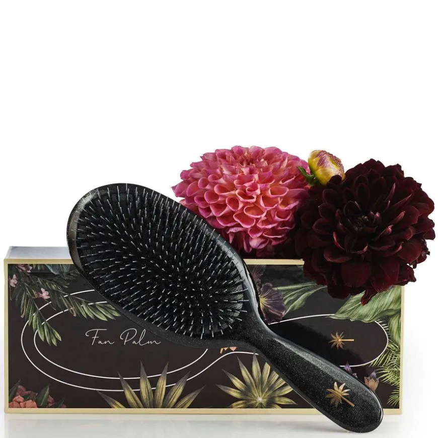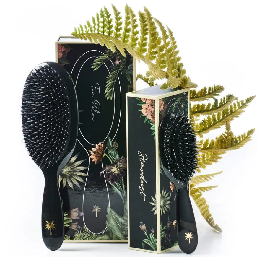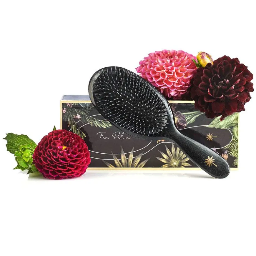 Boar & Nylon Brush Stardust Largeer en hårbørste laget av hår fra villsvin for et glansfullt hår og lange rundende nylonbørster, som stimulerer blodsirkulasjonen i hodebunnen. En fantastisk hårbørste av beste kvalitet. Den kommer i en lekker dustbag, pakket inn i vakker eske. Kommer i stor størrelse.