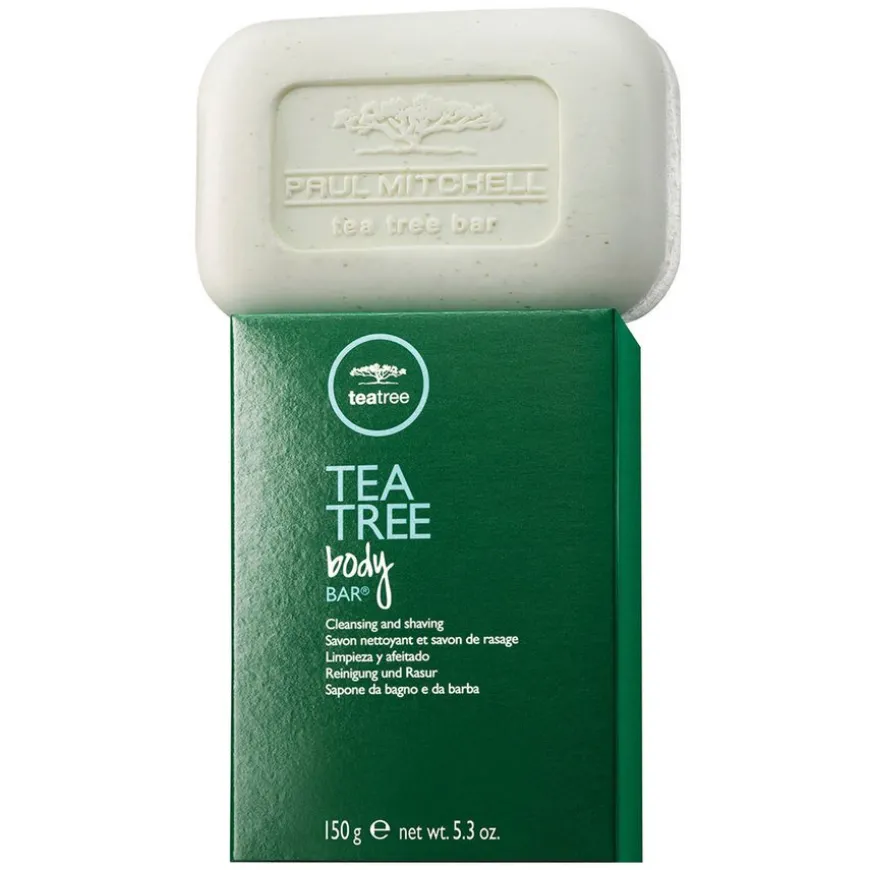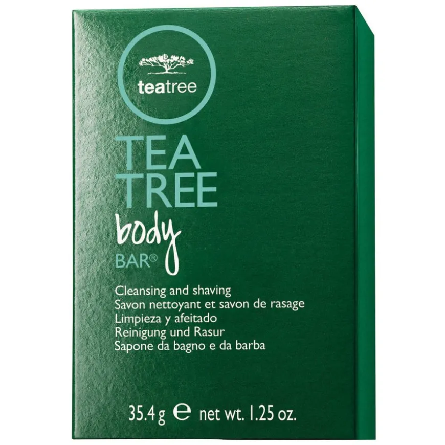 Tea Tree Body Bar Soap er en naturlig såpe med bakteriedrepende og pleiende ingredienser. Rengjør samtidig som den lindrer. Såpen renser, eksfolierer og passeralle hudtyper. Inneholder tea tree olje, peppermynte og lavendel som virker forfriskende for sansene. Passer også utmerket til barbering.