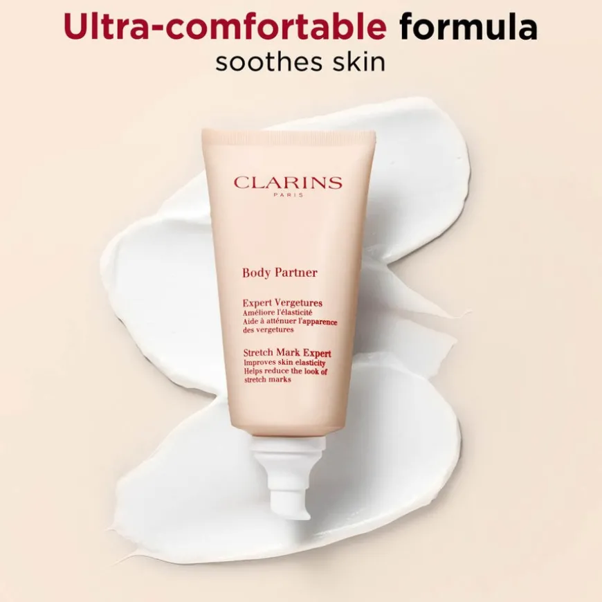 Body Partner jobber med strekkmerker ved å både korrigere og forebygge. Kremen har blitt utviklet av Clarins for de som ønsker å unngå strekkmerker som følge av graviditet eller vektnedgang/vektoppgang. Den plantebaserte formulaen jobber med elastisitet, rødhet og fasthet i huden. Kremen har to aktive ingredienser; ekstrakt fra økologisk grønn banan og centella asiatica – som jobber med å forbedre hudens elastisitet samtidig som den fukter og holder huden komfortabel.