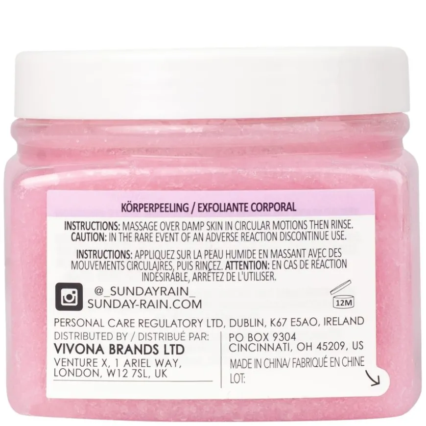 Body Scrub er enfantastisk eksfolierende kroppssukkerskrubb som gjør huden ren og myk. Inneholder Acai Berry ekstrakt som er rik på vitamin-C som også gir energi og glød samt naturlig sukker som fjerner døde hudceller og er fuktighetsgivende. Skrubb forsiktig til glatt hud med denne eksfolierende sukkerskrubben som er tilsatt acai berry. Passer perfekt for en matt hud som trenger en ekstra boost.