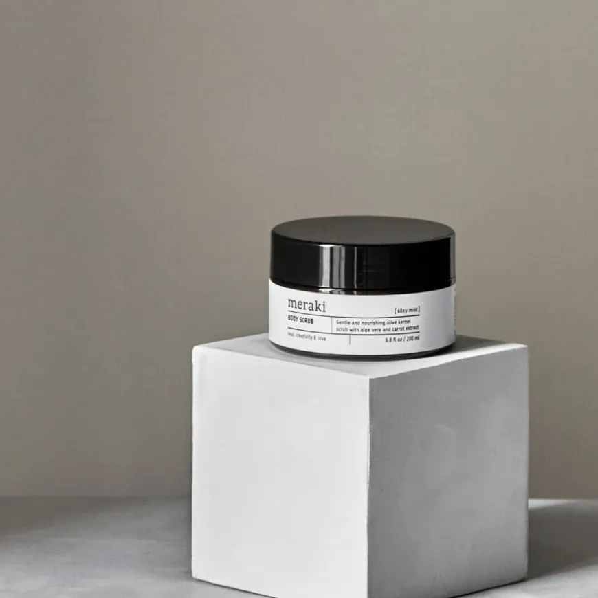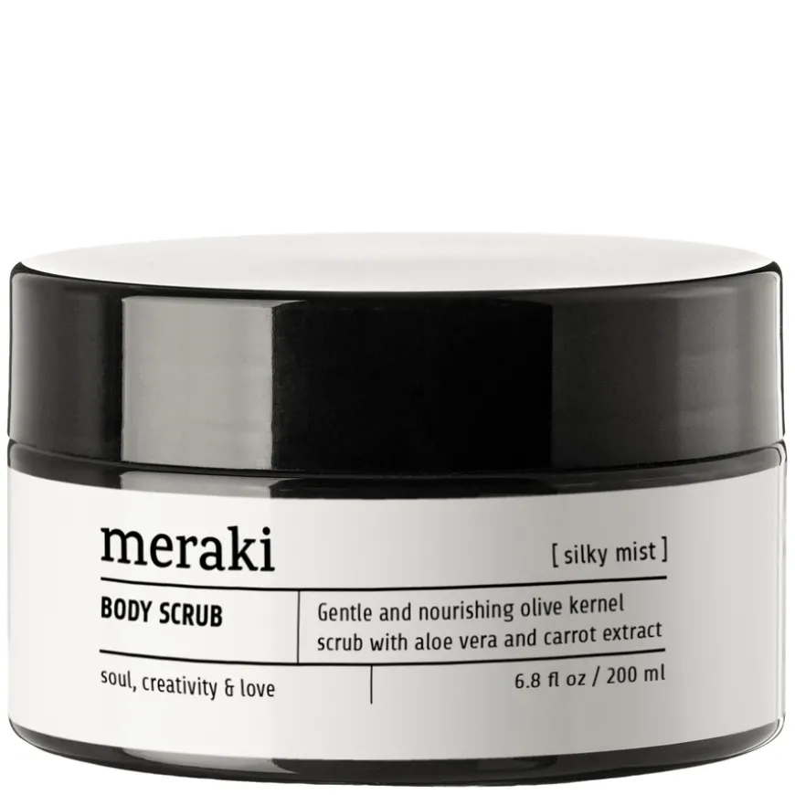 Meraki Body Scrub Silky Mist er en eksklusiv kroppsskrubb med silkemyk tekstur og en mild, frisk duft som gir huden fornyet glød. Den inneholder naturlige olivenkorn som skånsomt eksfolierer huden, fjerner døde hudceller og etterlater huden myk og glatt. Den minimalistiske grå krukken passer elegant inn på ethvert bad og gjør det enkelt å tilføre spa-følelsen i din daglige rutine. Perfekt etter en lang dag eller som en liten luksus før helgen.
