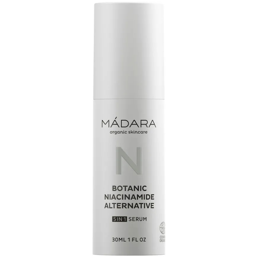 Botanic Niacinamide Alternative 5in1 Serum er et potent planteavledet niacinamidalternativ som forbedrer utseendet til hudens tekstur og fremmer en sunn, strålende hudtone. Drevet av balanserende ekstrakter av røde og brune alger og rosemyrt, er dette unike aktive ingredienskomplekset rettet mot forstørrede porer og kviser samtidig som det forbedrer utseendet til fet hud. Forbedrer utseendet til hyperpigmentering, rynker og fine linjer for et generelt forbedret hudutseende. Den lette og fuktighetsgivende gelkremformelen absorberes enkelt inn i huden og gir den en umiddelbar oppfriskning.