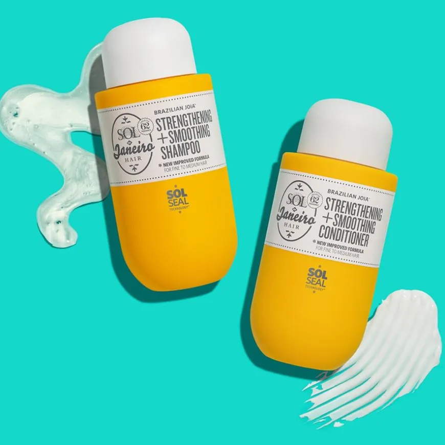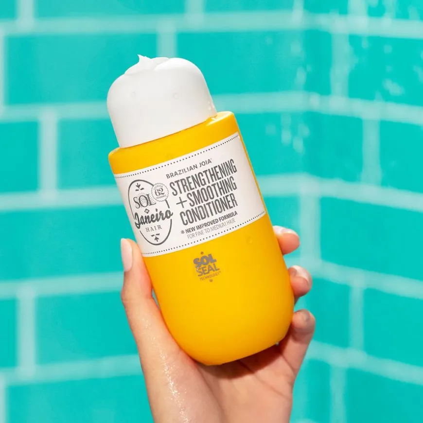 Brazilian Joia Strengthening + Smoothing Conditioner er en kremet balsam som håret ditt vil elske. Balsamen inneholder plantebaserte keratinmikrokapsler som ionisk binder sammen delte topper og skader som må lukkes og repareres.Medpatenterte SOL Seal Technology TM, klinisk bevist for å bygge og myke opp håret ved å reparere og binde sammen delte topper med «klem + legeaksjon» (klem og reparasjon).Dette er det første trinnet for sterkt, sunt hår som du ikke får nok av! Balsamen har en ikonisk og uimotståelig Cheirosa’62 brasilianske Bum Bum-duft. Perfekt for deg som vil kaste rundt med håret!Produktet er vegansk.