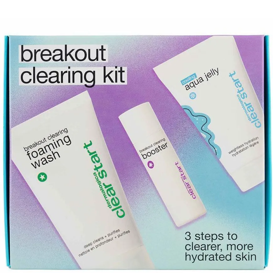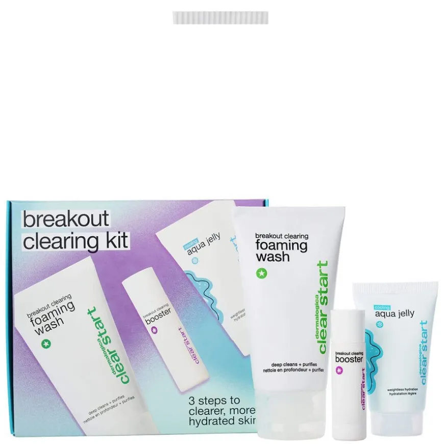 breakout clearing foaming wash: Water/Aqua/Eau, Cocamidopropyl Betaine, Sodium Lauroyl Methyl Isethionate, Acrylates/Beheneth-25 Methacrylate Copolymer, Polysorbate 20, Salicylic Acid, Melaleuca Alternifolia (Tea Tree) Leaf Oil, Citrus Aurantium Dulcis (Orange) Peel Oil, Lavandula Angustifolia (Lavender) Oil, Oleanolic Acid, Butylene Glycol, Enantia Chlorantha Bark Extract, Disodium Cocoamphodiacetate, Spiraea Ulmaria Extract, Camellia Sinensis Leaf Extract, Porphyra Umbilicalis Extract, Glycyrrhiza Glabra (Licorice) Root Extract, Linalool, Sodium Hydroxide, Limonene, Ethylhexylglycerin, Phenoxyethanol.cooling aqua jelly: Water/Aqua/Eau, Glycerin, Sodium Hyaluronate, Carbomer, Caprylhydroxamic Acid, Sodium Hydroxide, Sorbitan Oleate Decylglucoside Crosspolymer, Citrus Limon (Lemon) Peel Extract, Citrus Aurantium Dulcis (Orange) Peel Extract, Cinnamomum Zeylanicum Leaf Oil, Vanilla Planifolia Fruit Extract, Eugenia Caryophyllus (Clove) Leaf Oil, Eugenia Caryophyllus (Clove) Flower Extract, Cinnamomum Zeylanicum Bark Oil, Propanediol, Maclura Cochinchinensis Leaf Prenylflavonoids, Vaccinium Angustifolium (Blueberry) Fruit Extract, Haslea Ostrearia Extract, Melia Azadirachta Leaf Extract, Melia Azadirachta Flower Extract, Corallina Officinalis Extract, Coccinia Indica Fruit Extract, Solanum Melongena (Eggplant) Fruit Extract, Aloe Barbadensis Flower Extract, Ocimum Sanctum Leaf Extract, Ocimum Basilicum (Basil) Flower/Leaf Extract, Curcuma Longa (Turmeric) Root Extract, Phenethyl Alcohol, Tanacetum Annuum Flower Oil, Sodium Chloride.breakout clearing booster: Water/Aqua/Eau, PPG-15 Stearyl Ether, Butylene Glycol, Glycerin, Isopropyl Lauroyl Sarcosinate, Niacinamide, Salicylic Acid, Cetearyl Glucoside, 1,2-Hexanediol, Polysorbate 20, Hydroxyacetophenone, Chlorella Vulgaris Extract, Terpineol, Thymol, Chondrus Crispus (Carrageenan) Extract, Citrus Aurantium Dulcis (Orange) Peel Oil, Lactic Acid, Sodium Hyaluronate, Dimethicone, Xanthan Gum, Sclerotium Gum, Lecithin, Pullulan, Propanediol, Tetrasodium Glutamate Diacetate, Silica, Sodium Hydroxide, Sodium Citrate, Limonene.