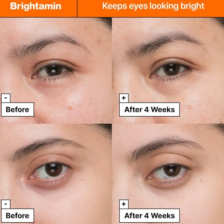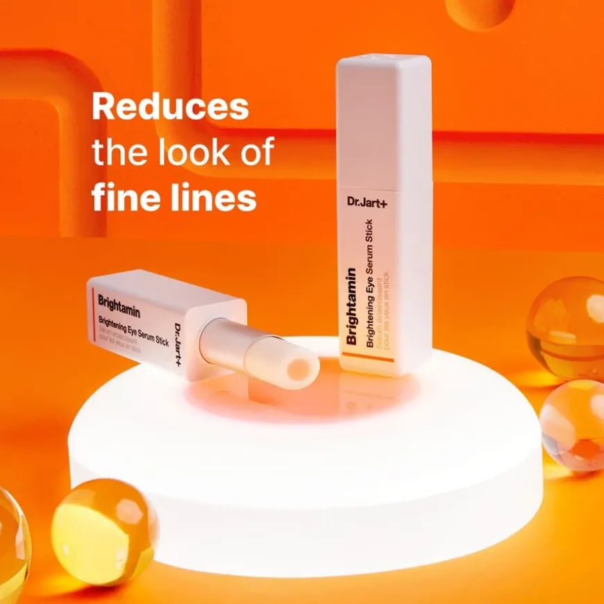 Brightamin Brightening Eye Serum Stick er en praktisk øyeserumstift med en dobbeltvirkende kjerne som kombinerer kraften av 20 % vitamin C og beskyttende vitamin E. Det oransje sentrum leverer høy konsentrasjon av lysnende vitamin C, mens den ytre ringen fukter og beskytter huden med vitamin E. Stiften glir lett over huden og smelter sømløst inn, perfekt både hjemme og når du er på farten.