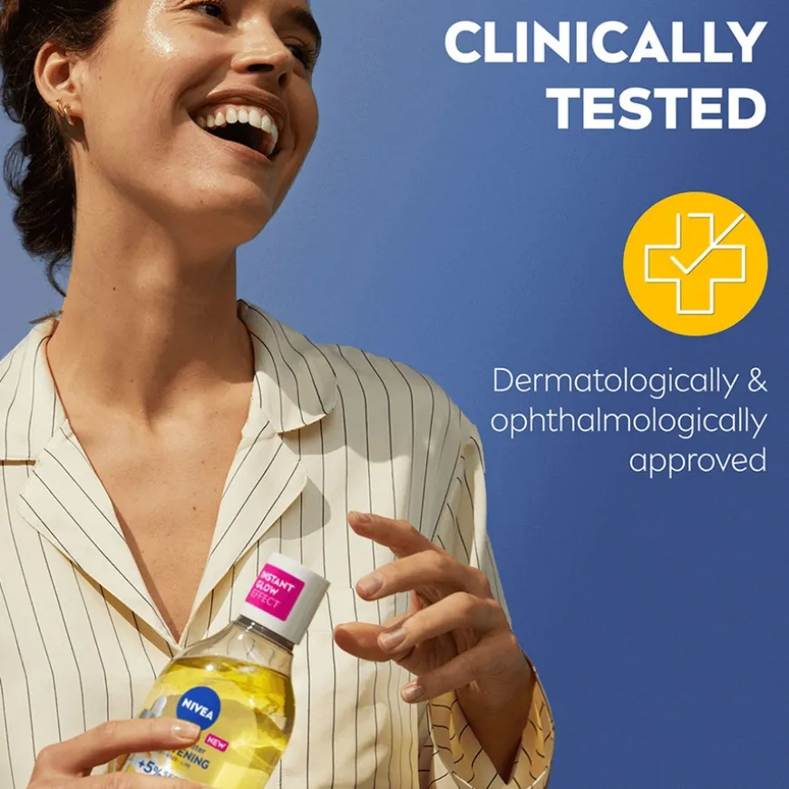 Brightining Micellar Water er en skånsom sminkefjerner for sensitiv og livløs hud. Den inneholder Vitamin C og E som hjelper til med å lysne huden samtidig som den effektivt fjerner smuss og sminke, inkludert vannfast sminke, uten å etterlate en fet følelse. Formuleringen bidrar til å fukte huden, gi den en jevnere tone og en sunn glød.