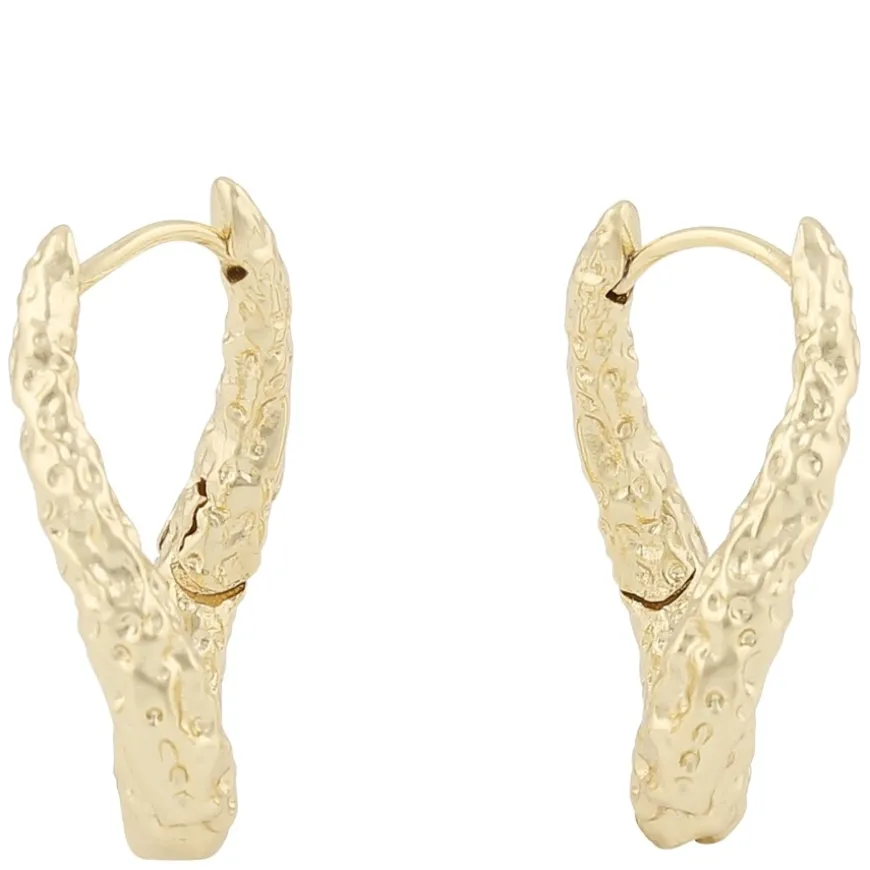 Brittany Small Hoop Earring fra Snö Of Sweden er et par moderne øredobber med en særegen og organisk utforming. Øreringene er laget i gullbelagt messing og har en strukturert overflate som gir designet et dynamisk og håndlaget preg. Dette er et stilfullt smykkevalg for deg som ønsker å uttrykke personlighet gjennom detaljer, og som setter pris på moderne former med en naturlig vri. Perfekt både til hverdags og som et iøynefallende tilskudd til antrekk for spesielle anledninger.