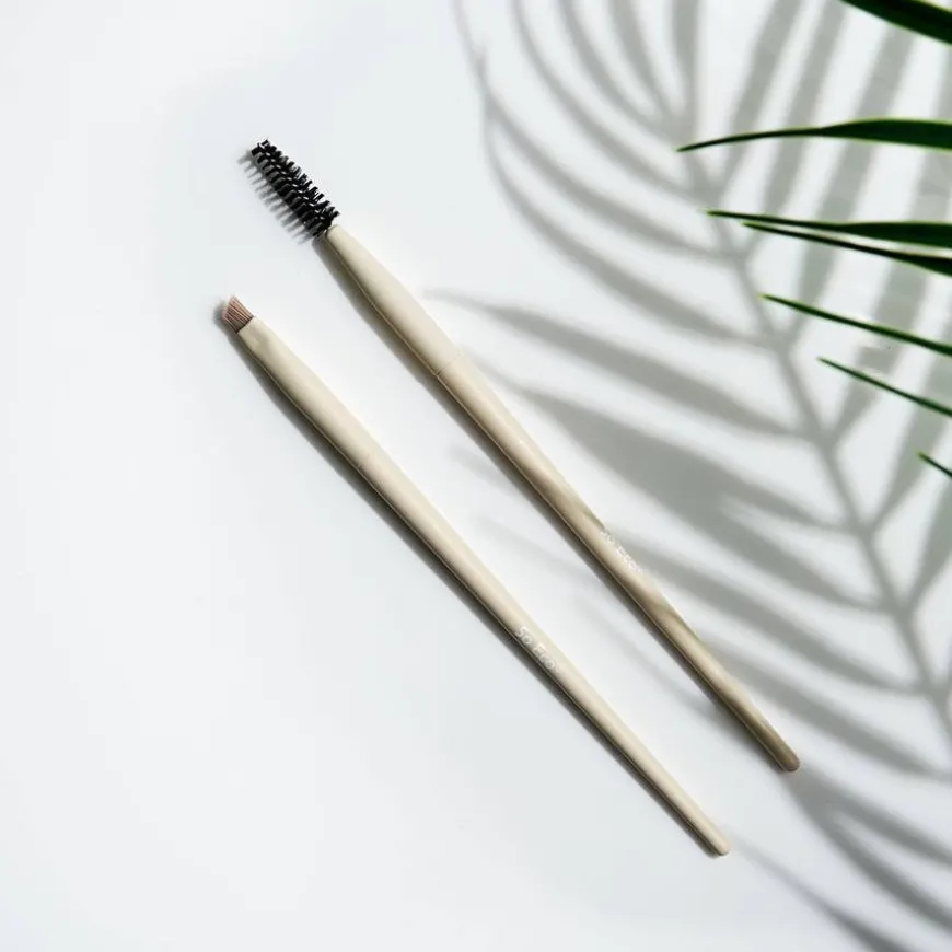 - Brow Brush: finvinklet brynbørste som er spesielt designet for å fylle ut brynene nøyaktig med enten pudder- eller pomadeprodukter.