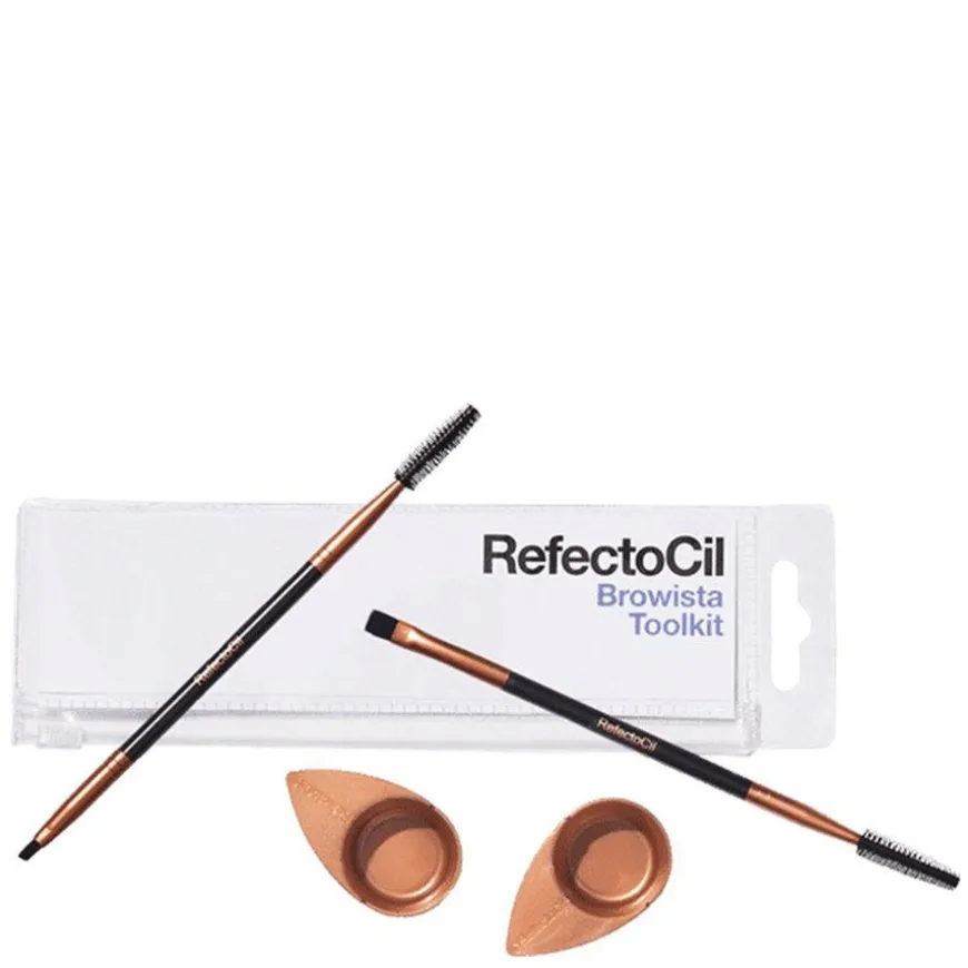 RefectoCil Browriste Toolkit gir deg alle verktøyene du trenger for perfekt påføring av bryns- og vippefarge. Settet inkluderer to påføringsskåler og to børster, alt samlet i en praktisk oppbevaringsveske. En gummibørste brukes til å børste bryn og vipper før, under og etter påføring. Den brede børsten er ideell for å dekke vippene med farge, mens den lille børsten er perfekt for å perfeksjonere brynene. Alt du trenger for profesjonell styling samlet i ett sett.