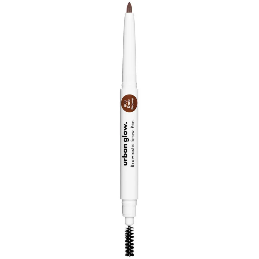 Fyll inn, definer og form med et naturlig resultat medBrowtastic Brow Pen fra Urban Glow.Browtastic Brow Pen er en myk uttrekkbar øyebrynspenn perfekt til å fylle inn tynne hårområder og skape jevnhet og tetthet. På andre siden av pennen finner du en spoliebørste som mykner opp harde kanter og softer ut. Tilgjengelig i flere nyanser.