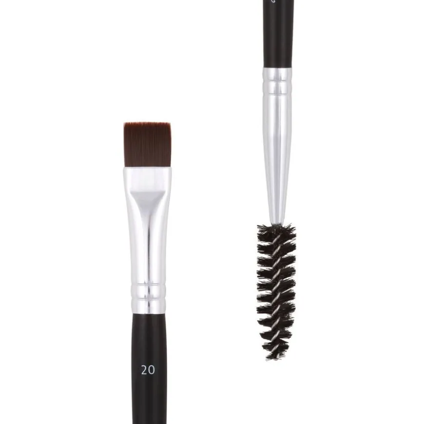 Brush 20 Dual Ended Flat Detail Brush er en flat firkantet øyenbrynskost med faste syntetiske fibre. Brynskosten er det ideelle verktøyet for å definere og forme bryn, men fungerer også utmerket for å blende ut highlighter eller concealer for et jevnt og naturlig resultat. Bruk den runde sylinderformet enden for å blende ut ønsket produkt.