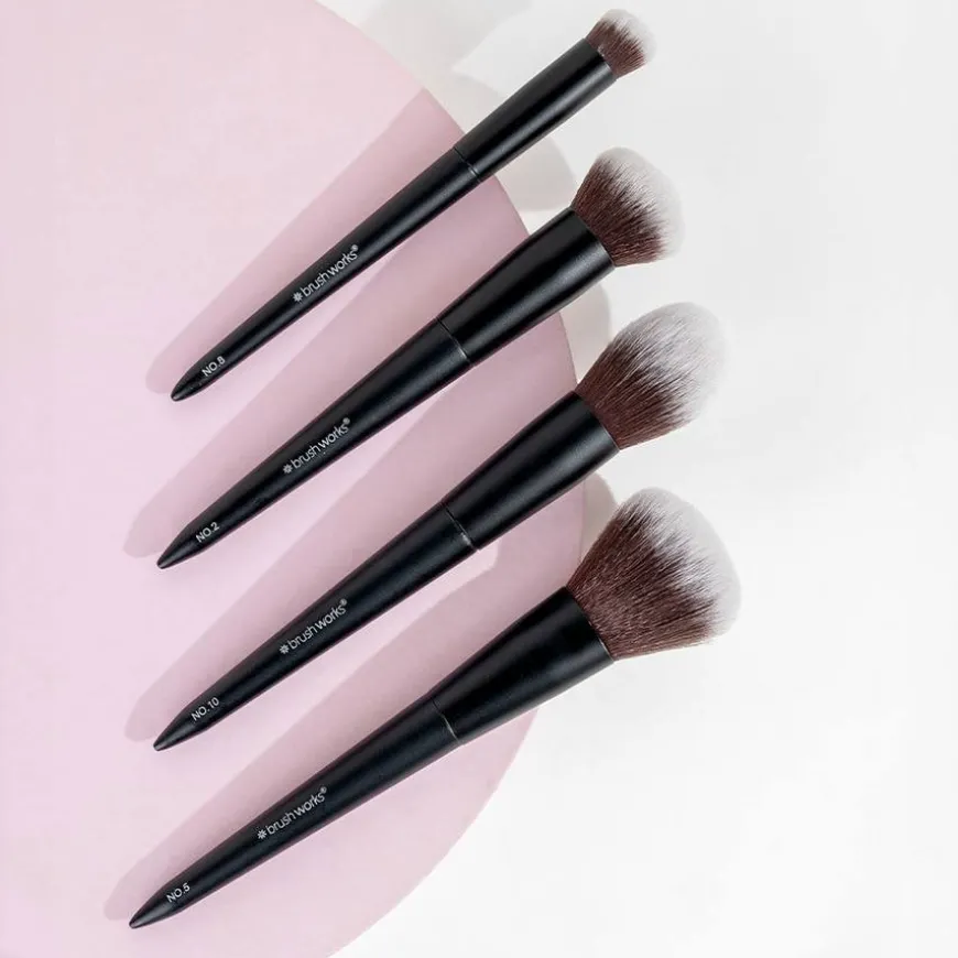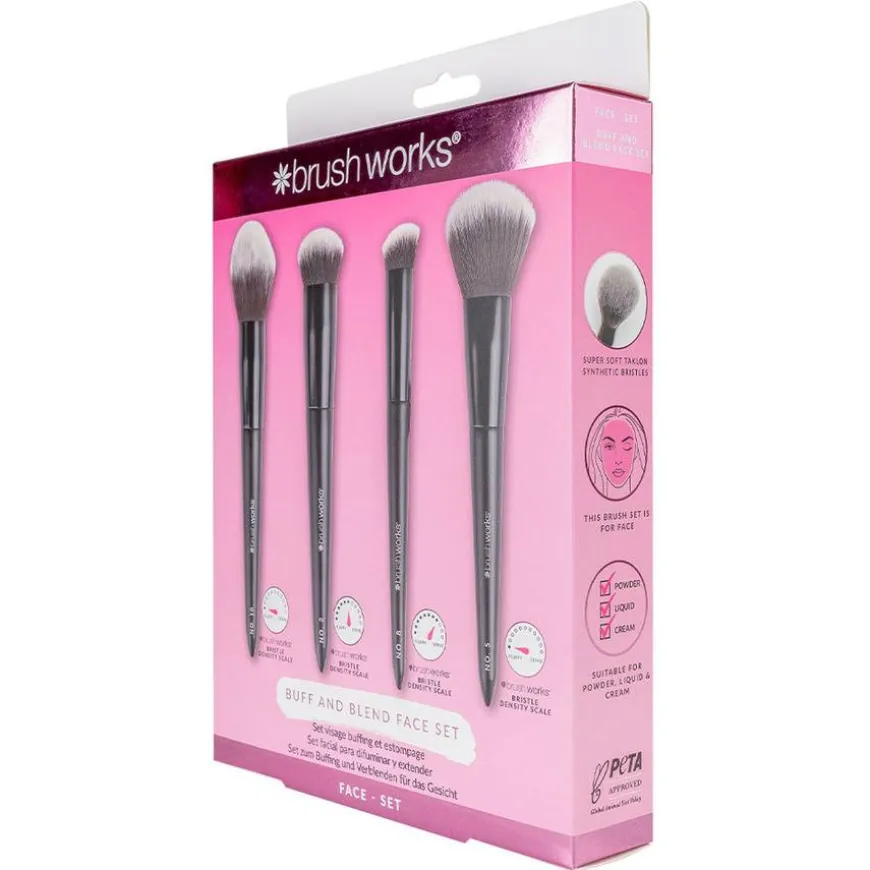 Her presenteres Brushworks Buff and Blend Face Set, en nøye utvalgt samling av fire essensielle børster designet for å løfte makeup-rutinen.