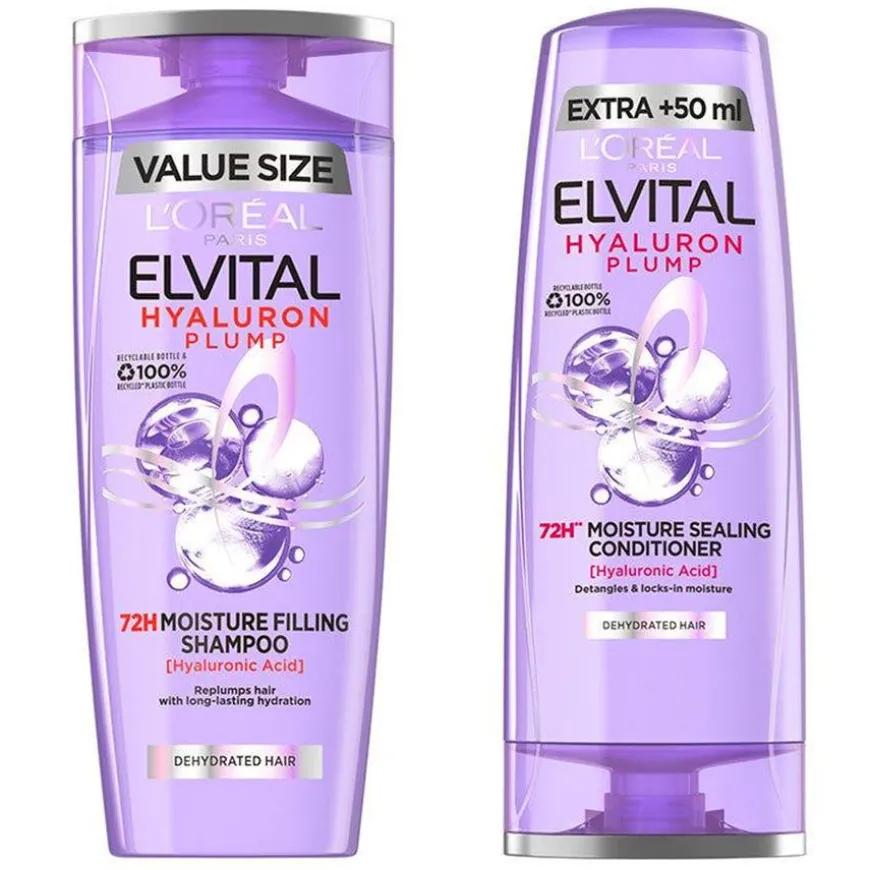 - Elvital Hyaluron Plump Shampoo passer til dehydrert hår. Den fuktighetsgivende shampooen glatter ut hårets overflate og fyller håret med fukt i 72 timer.