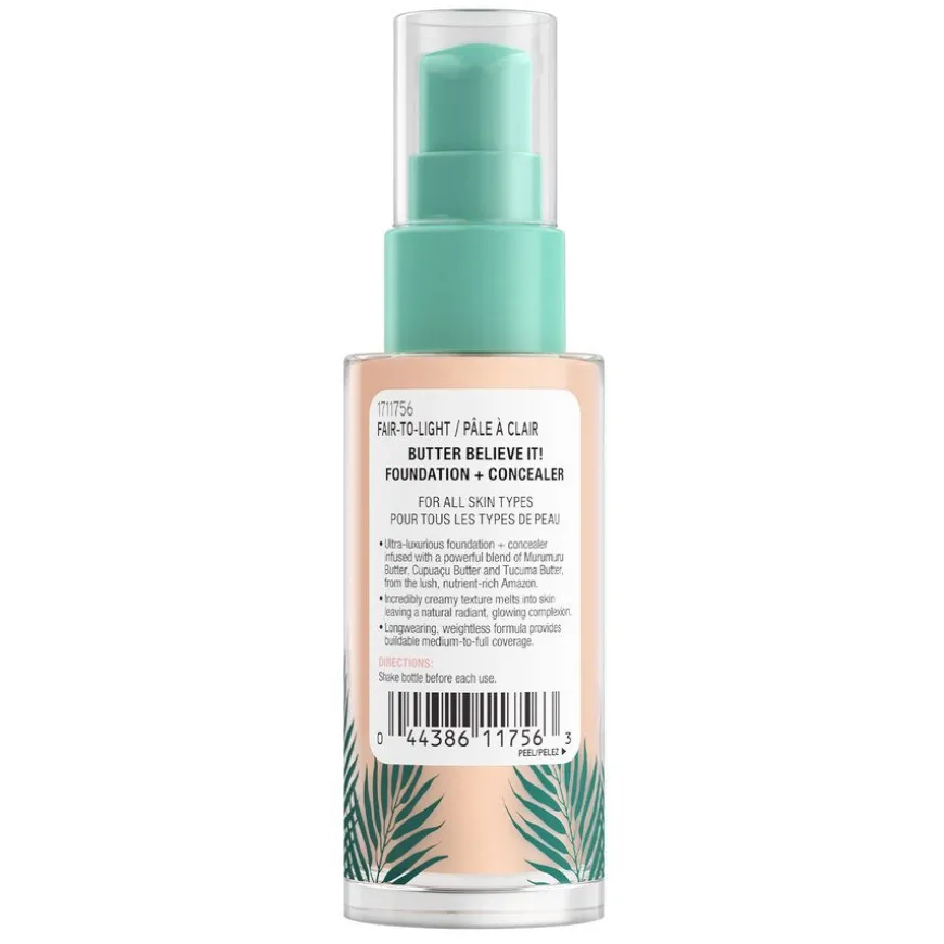 Den ultra-lukseriøse Butter Foundation + Concealer fra Murumuru Butter-serien til Physicians Formula er en foundation beriket med murumurusmør, cupuacusmør og tucumsmør fra Amazonas. Den kremaktige teksturen er byggbar, smelter godt inn i huden og etterlater en naturlig strålende glød. Egner seg alle hudtyper.
