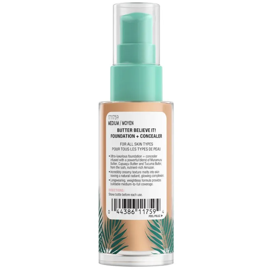 Den ultra-lukseriøse Butter Foundation + Concealer fra Murumuru Butter-serien til Physicians Formula er en foundation beriket med murumurusmør, cupuacusmør og tucumsmør fra Amazonas. Den kremaktige teksturen er byggbar, smelter godt inn i huden og etterlater en naturlig strålende glød. Egner seg alle hudtyper.