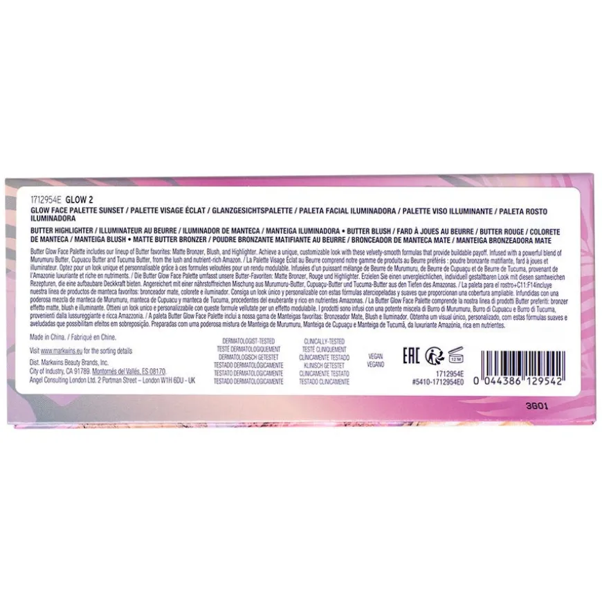 Butter Glow Face Palette inkluderer et utvalg av butter favoritter: Matte Bronzer, Blush og Highlighter. Oppnå et unikt, tilpassbart utseende med disse fløyelsmyke formlene som gir byggbar påføring.