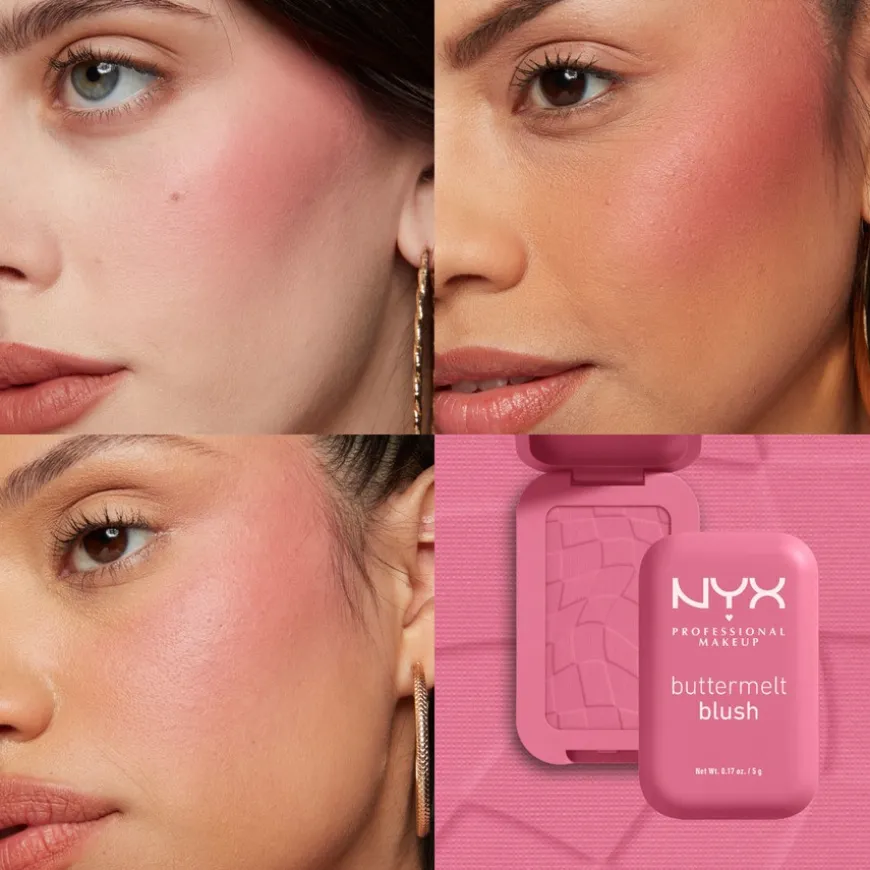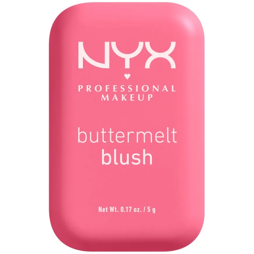 Buttermelt Blush fra NYX Professional Makeup er full av vakre pigmenter som er enkle å tone ut og som holder lenge. Den kremede formelen er full av vakre pigmenter som er enkle å tone ut. Beriket med mango-, mandel- og sheasmør – går alt som smurt. Brukes sammen med Buttermelt Blush Brush for perfekt påføring. Skap den looken du liker best, med alt fra sarte rosa nyanser, til fersken og fuksia. Velg mellom nyanser som enten går ton i ton med huden eller ekstra skimmer. Egnet for alle hudtyper.