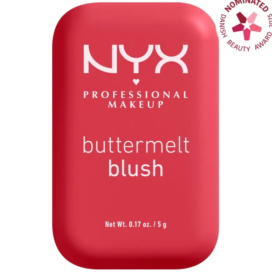 Buttermelt Blush fra NYX Professional Makeup er full av vakre pigmenter som er enkle å tone ut og som holder lenge. Den kremede formelen er full av vakre pigmenter som er enkle å tone ut. Beriket med mango-, mandel- og sheasmør – går alt som smurt. Brukes sammen med Buttermelt Blush Brush for perfekt påføring. Skap den looken du liker best, med alt fra sarte rosa nyanser, til fersken og fuksia. Velg mellom nyanser som enten går ton i ton med huden eller ekstra skimmer. Egnet for alle hudtyper.