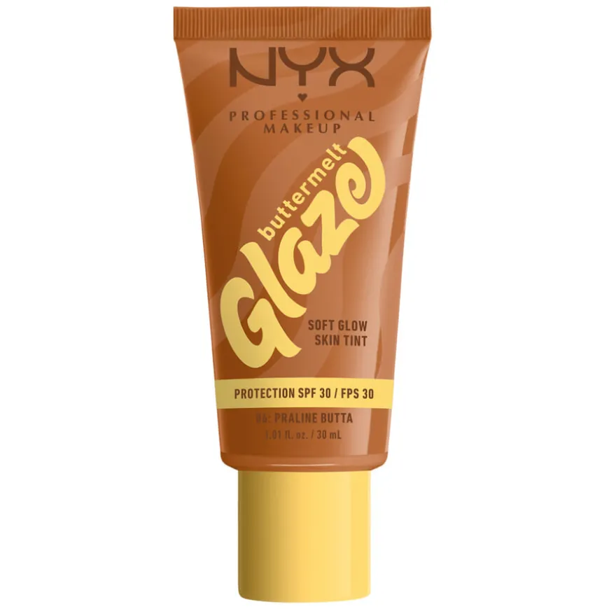 NYX Professional Makeup Buttermelt Glaze Foundation som er beriket med sheasmør, mangosmør og niacinamid. Herlig formel som gir fantastisk glød og en deilig og myk hud. I tillegg har produktet SPF30!