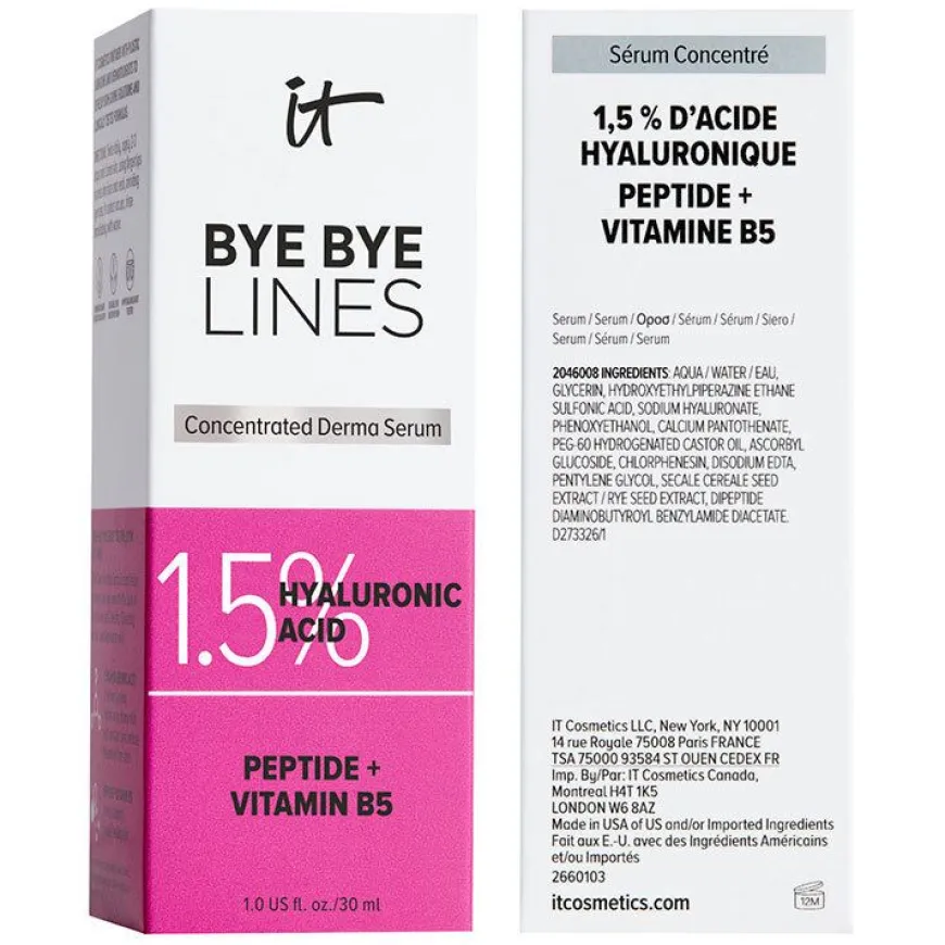 IT Cosmetics Bye Bye Lines Hyaluronic Acid Serum er din dermatologisk testede og dokumentrerte løsning for å fylle ut og redusere hudens fine linjer på bare 2 uker!er utviklet i samarbeid med hudpleieeksperter og dermatologer og passer for alle hudtyper, inkludert sensitiv hud.