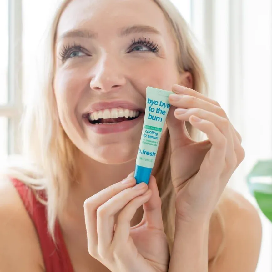 Bye Bye To The Burn Cooling Lip Serum er et kjølende og beroligende leppeserum som gir fukt og pleie til såre, tørre lepper. Den milde formelen inneholder ringblomst- og kamilleolje som virker reparerende og lindrende, mens en frisk mintduft gir en kjølende effekt. Serumet er ideelt for sprukne, irriterte lepper og etter soleksponering. 100% vegansk og fri for parabener.