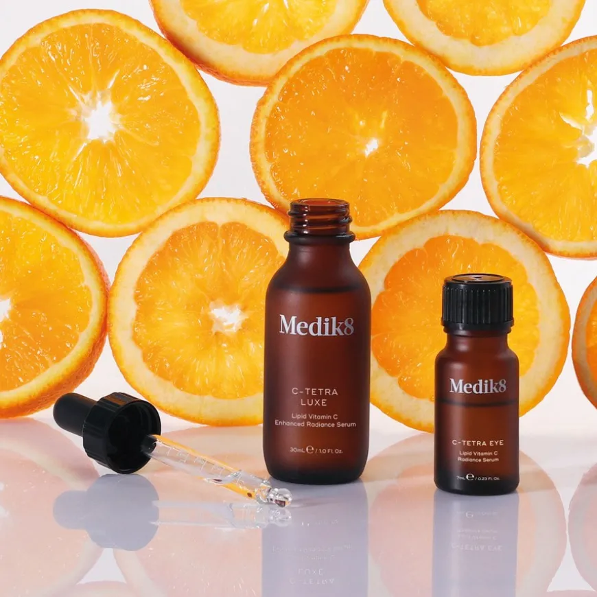 - Tetraheksyldekylaskorbat (3 %): fettløselig tetraheksyldekylaskorbat kan trenge dypt inn i hudens beskyttende lipidbarriere for å stimulere kollagenproduksjonen, gi antioksidativ beskyttelse mot frie radikaler og gjøre huden lysere og klarere.