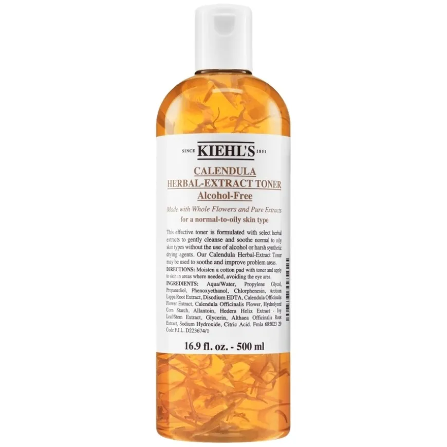 Calendula Toner er en ikonisk toner fra Kiehl’s, først lansert for over 40 år siden, og er fortsatt en favoritt for normal til fet hud. Denne effektive toneren er formulert med urteekstrakter og ekte calendulablader, som skånsomt renser og balanserer huden uten å tørke den ut. Den bidrar til å lindre ubehag, redusere rødhet og forbedre hudens tekstur over tid. Den bærekraftige emballasjen er laget av 100 % resirkulerbare materialer (PCR), og produktet er vegansk. Passer for kombinert hud og sensitiv hud som trenger beroligende og rensende pleie.